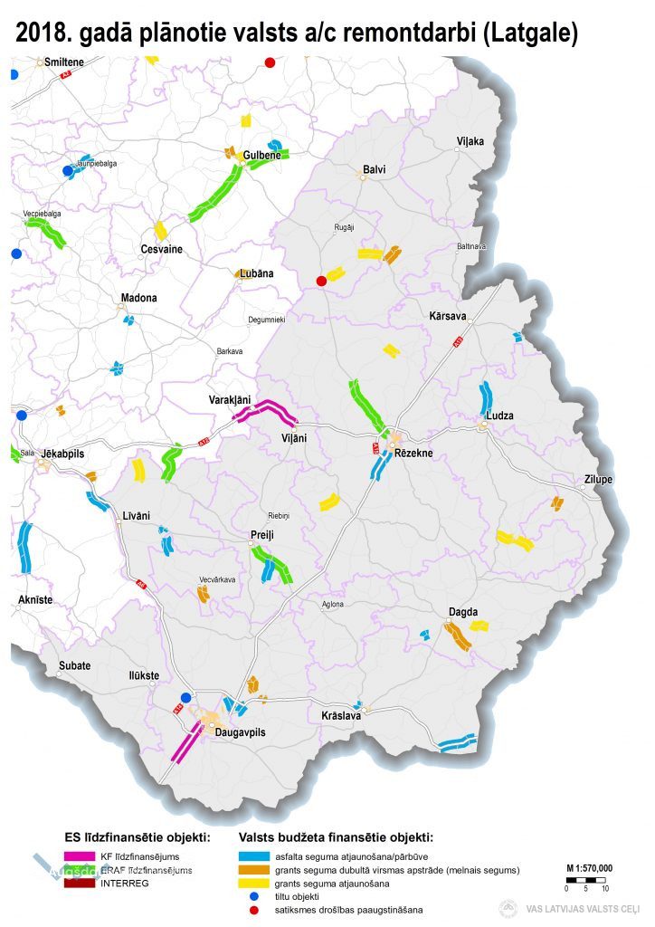 Šogad turpināsies būvniecības darbi uz autoceļa Stropi – Krauja (P65) posmā no Kraujas ciema sākuma līdz krustojumam ar valsts galveno autoceļu Rīga – Daugavpils – Krāslava – Baltkrievijas rob. (Patarnieki) (A6). Pusei no šī 2,3 km posma tiks veikta pilna segas pārbūve, ieskaitot drenējošās kārtas, šķembu pamata nesošās kārtas būvniecību un asfaltēšanu, bet otrai pusei veikta segas pastiprināšana ar reciklēto materiālu. Šogad vēl jāuzklāj asfalta virskārta, jāsakārto ūdens atvade, kā arī jāizbūvē apgaismojums un gājēju ceļš. Šī projekta ietvaros šogad plānots izbūvēt arī rotācijas apli krustojumā ar Daugavpils šoseju. Darbus veic SIA “Binders” un projekta izmaksas ir 2,46 milj. eiro (ar PVN).
