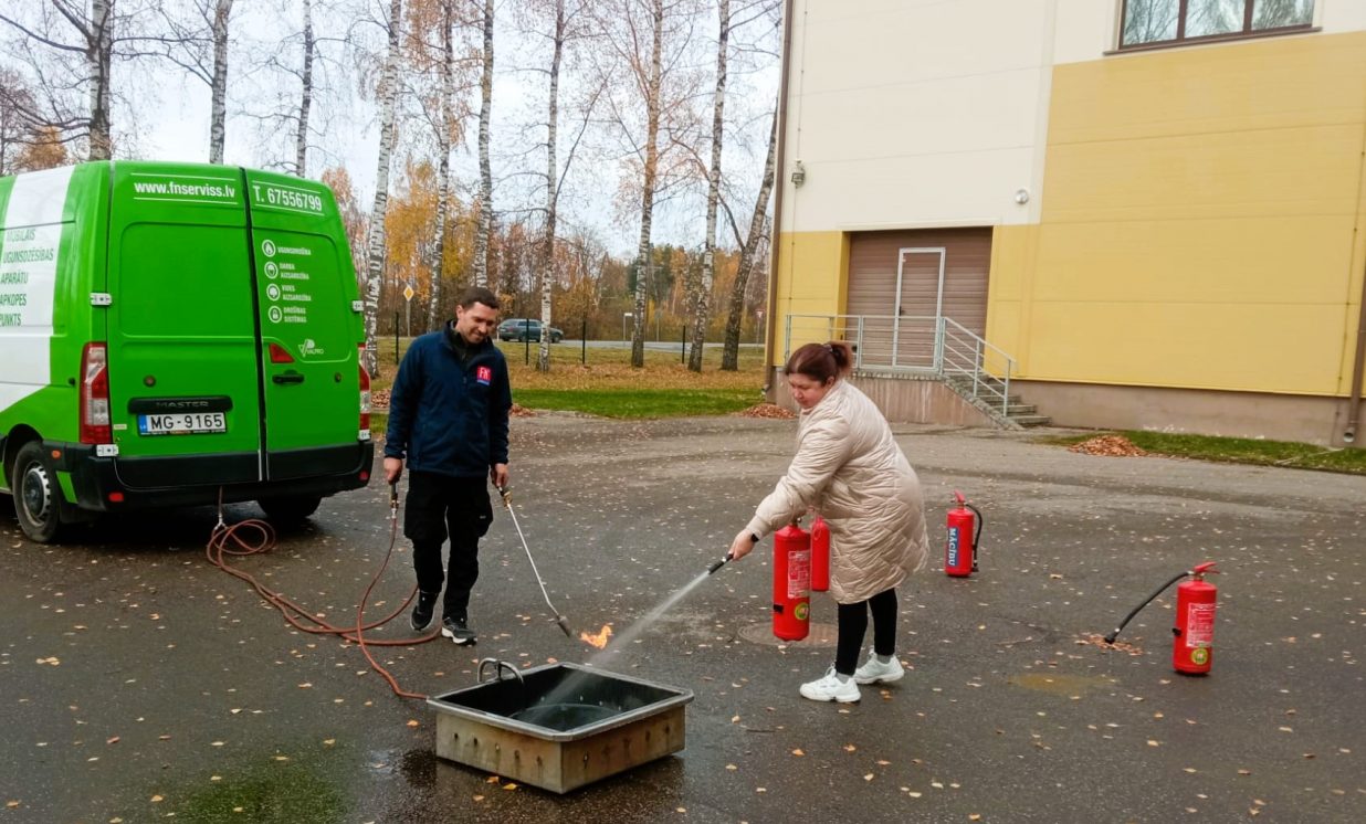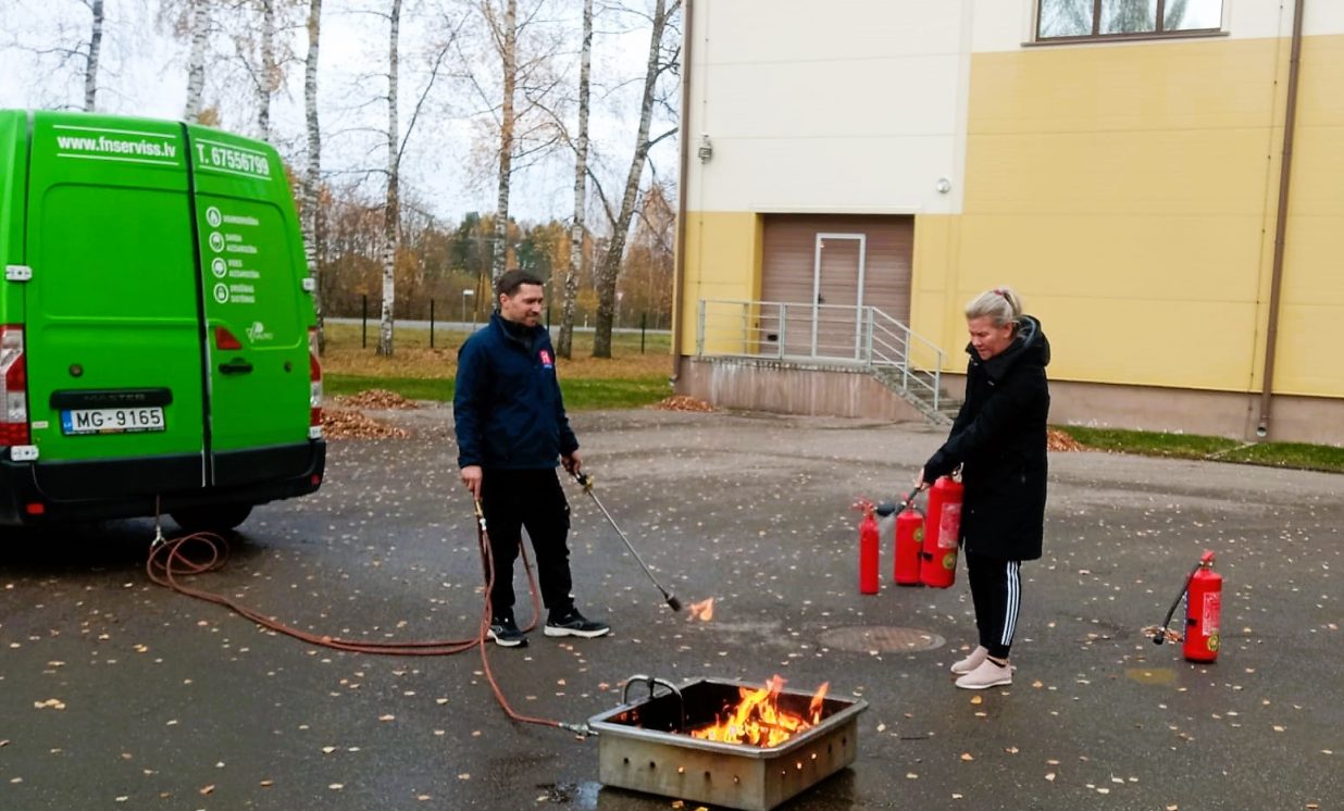 24. oktobrī sadarbībā ar SIA "FN SERVISS" instruktoru Jāni Mozuli Lāču pamatskolā notika teorētiskās un praktiskās apmācības ugunsdrošības jomā.