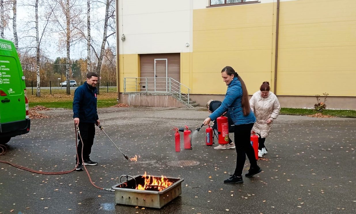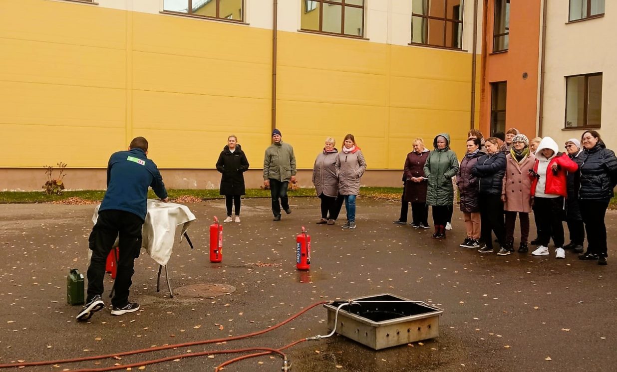 Praktiskajā daļā skolas pedagogiem un darbiniekiem bija iespēja pašiem dzēst uguni ar ugunsdzēsības aparātu un gūt pārliecību par saviem spēkiem un prasmēm. Iegūtās zināšanas un prasmes padarīs katra darbinieka dzīvi drošāku!