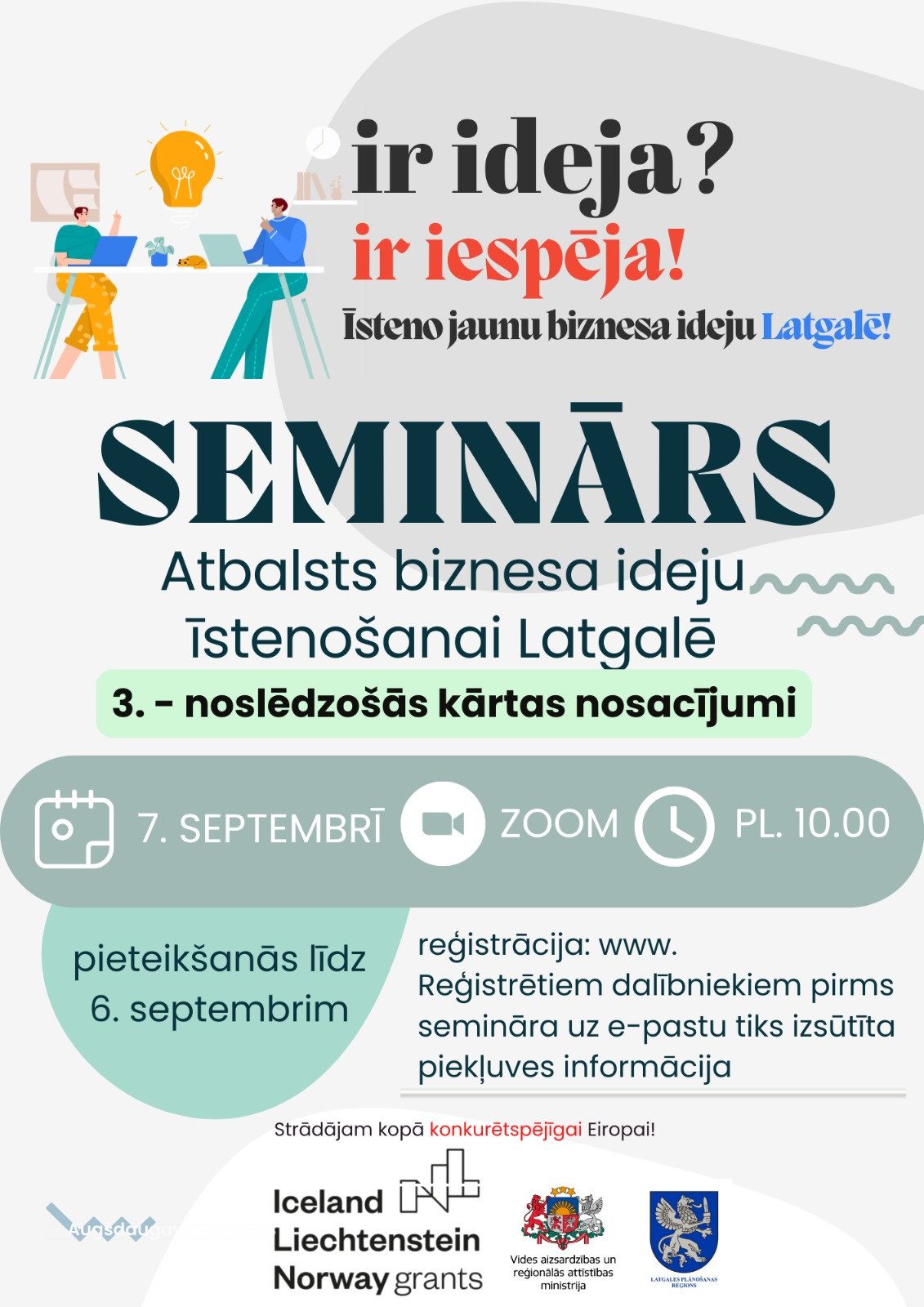 Latgales plānošanas reģions 2022.gada 7.septembrī rīko 3. kārtas (noslēdzošās) grantu atklātā projektu konkursa “Atbalsts biznesa ideju īstenošanai Latgalē” informatīvo semināru.
