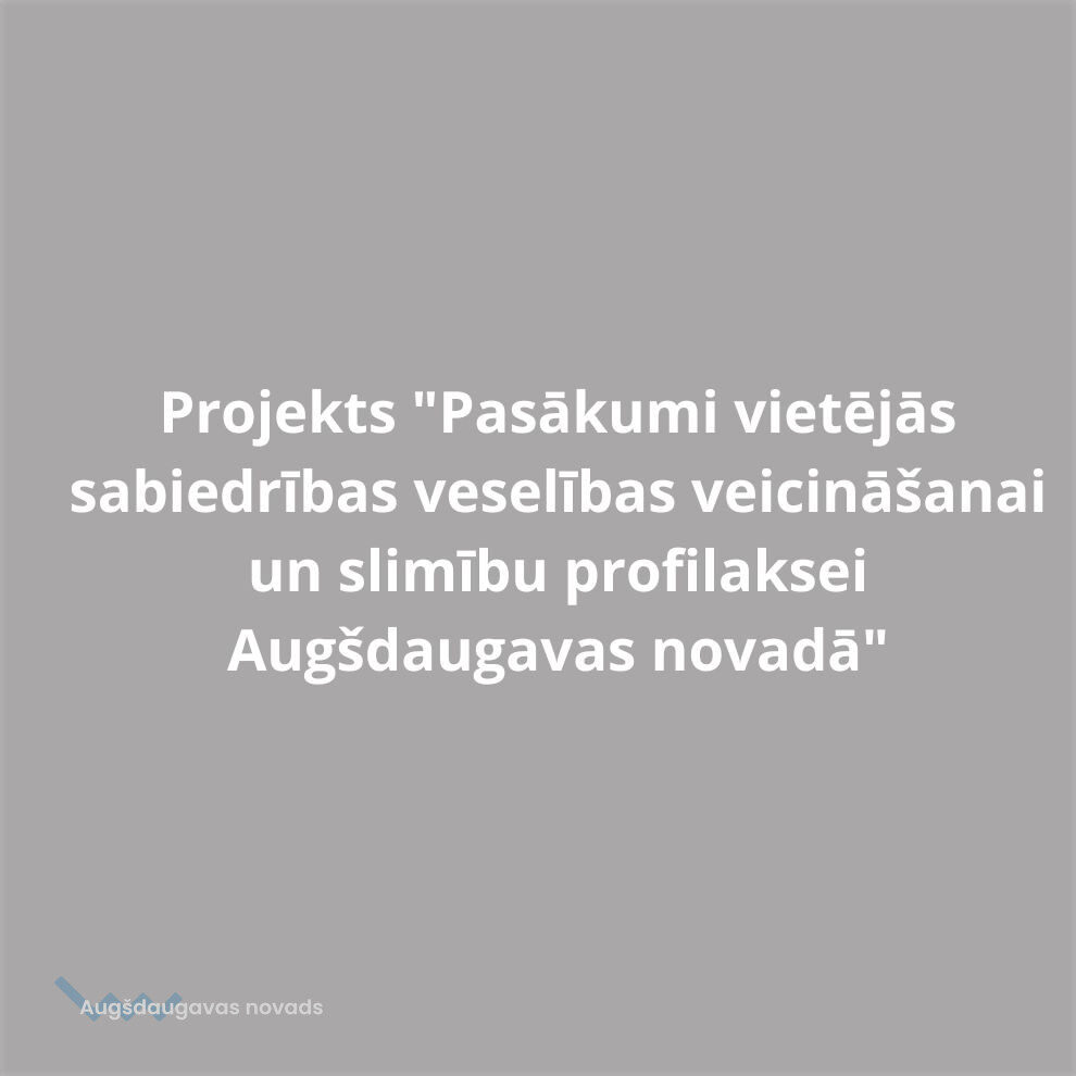Projekta “Pasākumi vietējas sabiedrības veselības veicināšanai un slimību profilaksei Augšdaugavas novadā” mērķis ir uzlabot pieejamību veselības veicināšanas un slimību profilakses pakalpojumiem Augšdaugavas novada iedzīvotājiem, īstenojot slimību profilakses un veselības veicināšanas pasākumus mērķa grupām un vietējai sabiedrībai. Projekta ietvaros paredzētie pasākumi aktualizē šādas tēmas: 1) seksuālā un reproduktīvā veselība; 2) atkarību mazināšana un profilakse; 3) traumatisma mazināšana; 4) psihiskā veselība; 5) veselīgs uzturs; 6) fiziskās aktivitātes; 7) veselības veicināšana un slimību profilakses uzlabošana; 8) prenatālās un agrīnās bērnības vecāku prasmju programmas.