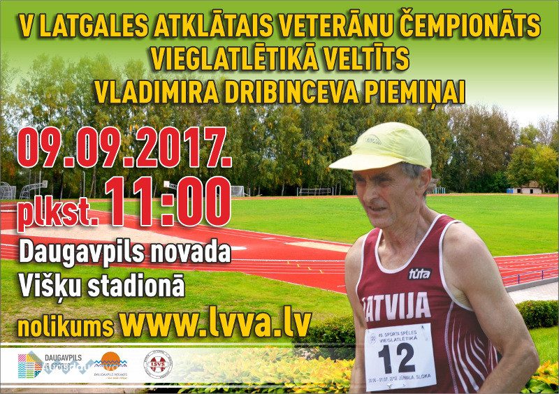 9.septembrī plkst. 11.00 Višķu stadionā notiks V Latgales atklātais veterānu čempionāts vieglatlētikā veltīts Vladimira Dribinceva piemiņai. Nolikums www.lvva.lv