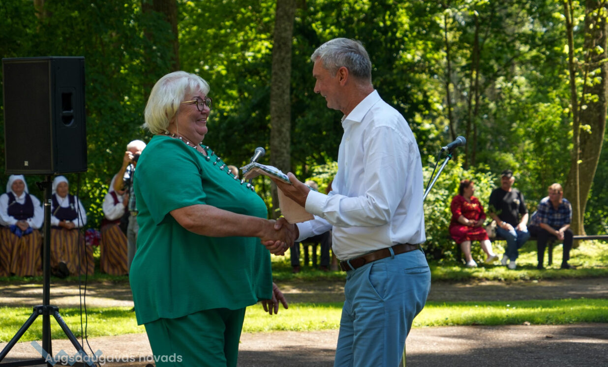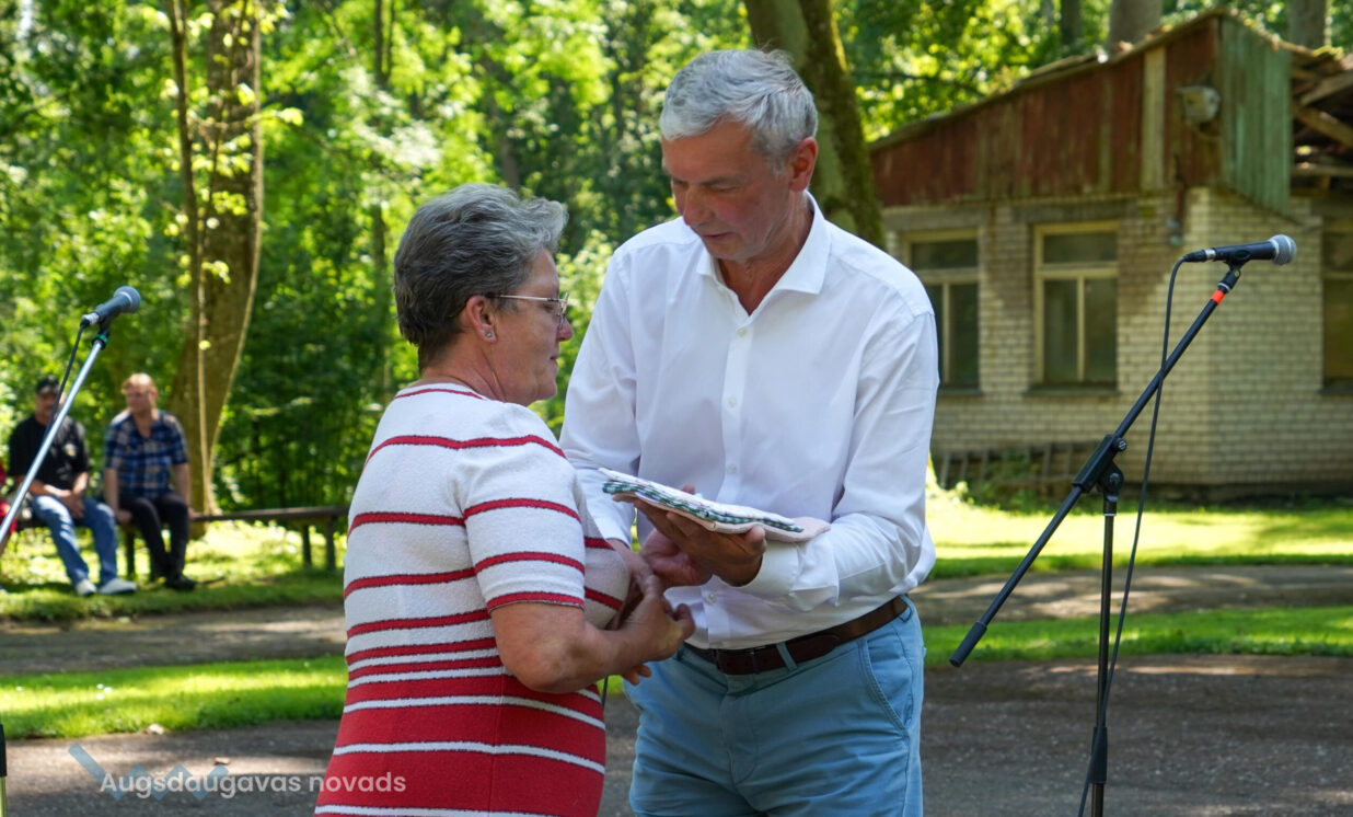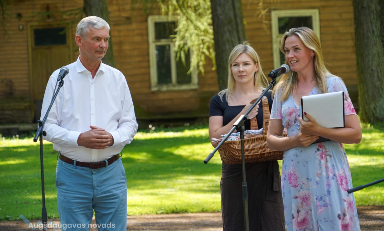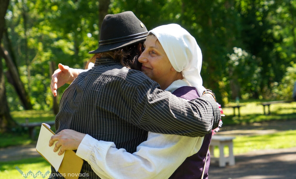 Skaistu dāvanu bija sagādājis ansamblis “Vabalis” – Daces Teivānes austus paklājiņus, ko dāvināja saviem draugiem – ansamblim “Stiprās sievas”.