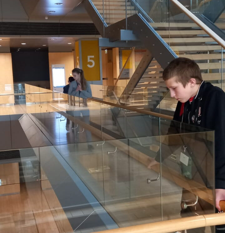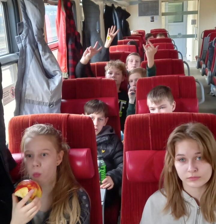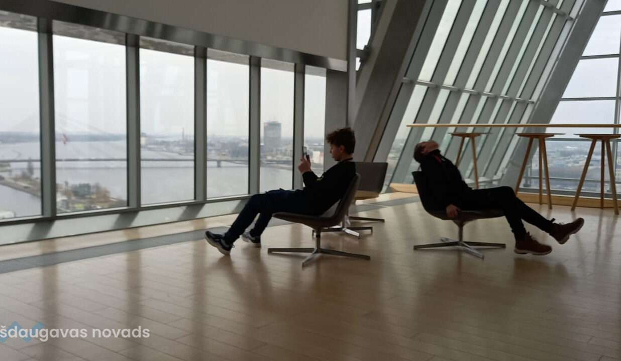 Ceļā devāmies ar vilcienu - daudziem tas bija pirmais brauciens ar šo transporta līdzekli un pa Rīgu pārvietojāmies kājām! Vispirms apmeklējām Latvijas Nacionālo bibliotēku, kur izspēlējām Orientēšanās spēli. Tā bija interesanta pieredze – pašiem pārvietoties pa stāviem, meklēt objektus un atbildēt uz jautājumiem. Uzbraucām arī bibliotēkas 11. un 12.stāvā, lai redzēto skaisto Rīgas panorāmu no augšas.