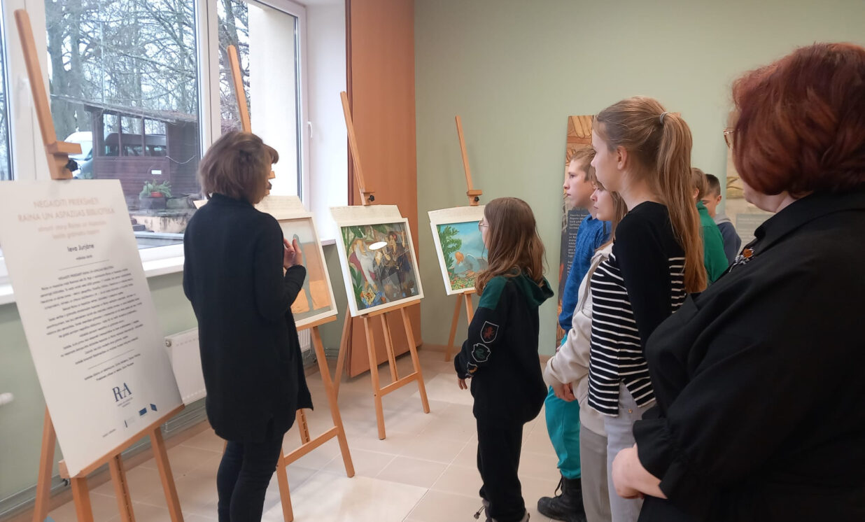 Pēc Līksnas pagasta bibliotekāres Elitas Poļakovas laipnā aicinājuma Vaboles pamatskolas 6.klases skolēni apmeklēja Raiņa un Aspazijas muzeja sagatavoto izstādi "Negaidīti priekšmeti Raiņa un Aspazijas bibliotēkā". Mūs sagaidīja pasākumu vadīja Agnese Timofejeva - Raiņa muzeja "Tadenava" vecākā speciāliste, kas iepazīstināja ar izstādes eksponātiem - Ievas Jurjānes radītajiem mākslas darbiem – eksponēto grāmatu portretiem, krāšņām vīzijām no Raiņa un Aspazijas dzīves un dažādiem priekšmetiem. Piemēram interesanti bija redzēt pagājušā gadsimta sākuma konfekšu papīriņus, ko Rainis bija ielicis lasītajās grāmatās vai arī sausos augus, kas starp grāmatas lapām ir pārvērtušies par herbāriju. Īpaši Rainim paticis par grāmatzīmēm izmantot lauru lapas.