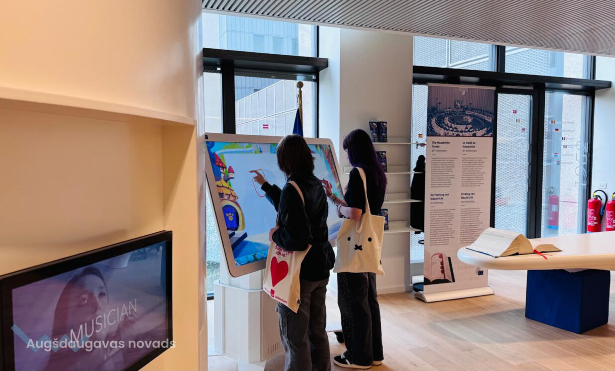 Nikolajs mums izrādīja lielo Eiropas Padomes ēku. Īpašas sajūtas bija atrasties ēkas daļā, kur ir izvietoti visu ES valstu karogi un kur tiek intervēti valstu prezidenti un citas ievērojamas personības. Arī mēs šo vietu un mirkli iemūžinājām fotogrāfijās. Tikšanās laiks bija ierobežots, bet paspējām ne tikai parunāt par to, kā katram klājas, bet arī par to, kā Latvijas jaunieši var iesaistīties Eiropas aktivitātēs un gūt darba pieredzi Briselē. Paspējām baudīt arī Beļģijas kafiju un citus našķus, ar ko mūs cienāja Nikolajs.