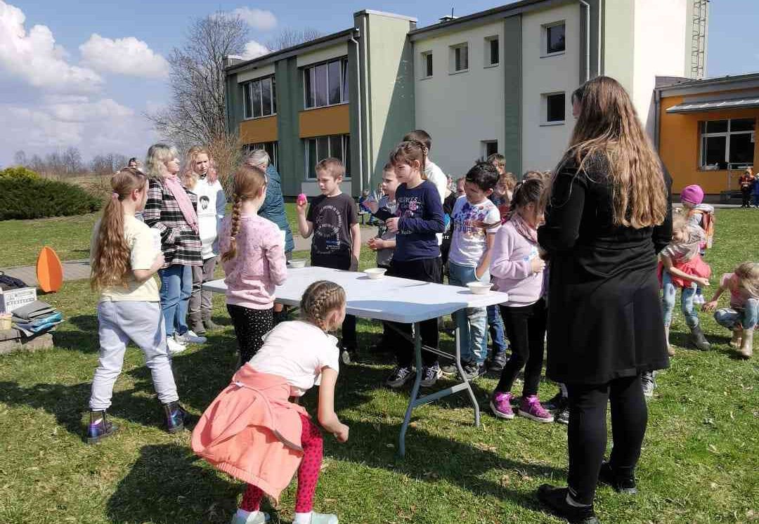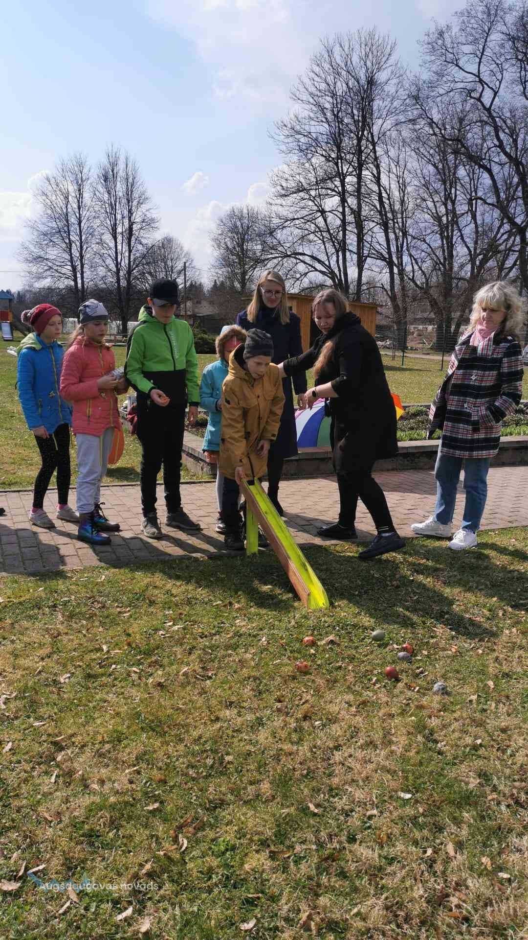 Vaboles vidusskolas Mazās skolas skolēni un skolotāji pavadīja Lieldienas jautrā noskaņā. Lutināja gan siltā saule, gan atvēsināja dzestrais lietutiņš, taču tas netraucēja baudīt svētku prieku. Skolēniem bija jāparāda zināšanas mīklu minēšanā un tautasdziesmu veidošanā. Varēja izmēģināt lēkt kā zaķiem, nest olu karotē ar aizsietām acīm, pīt bizes no šallēm, mest tenisa bumbiņas traukā, kā arī priecāties par skaistajām oliņām, kuras izmantoja olu ripināšanas sacensībās. Skolēnos bija redzams prieks un sajūsma par pavadīto laiku, savukārt skolotāji juta gandarījumu par paveikto.