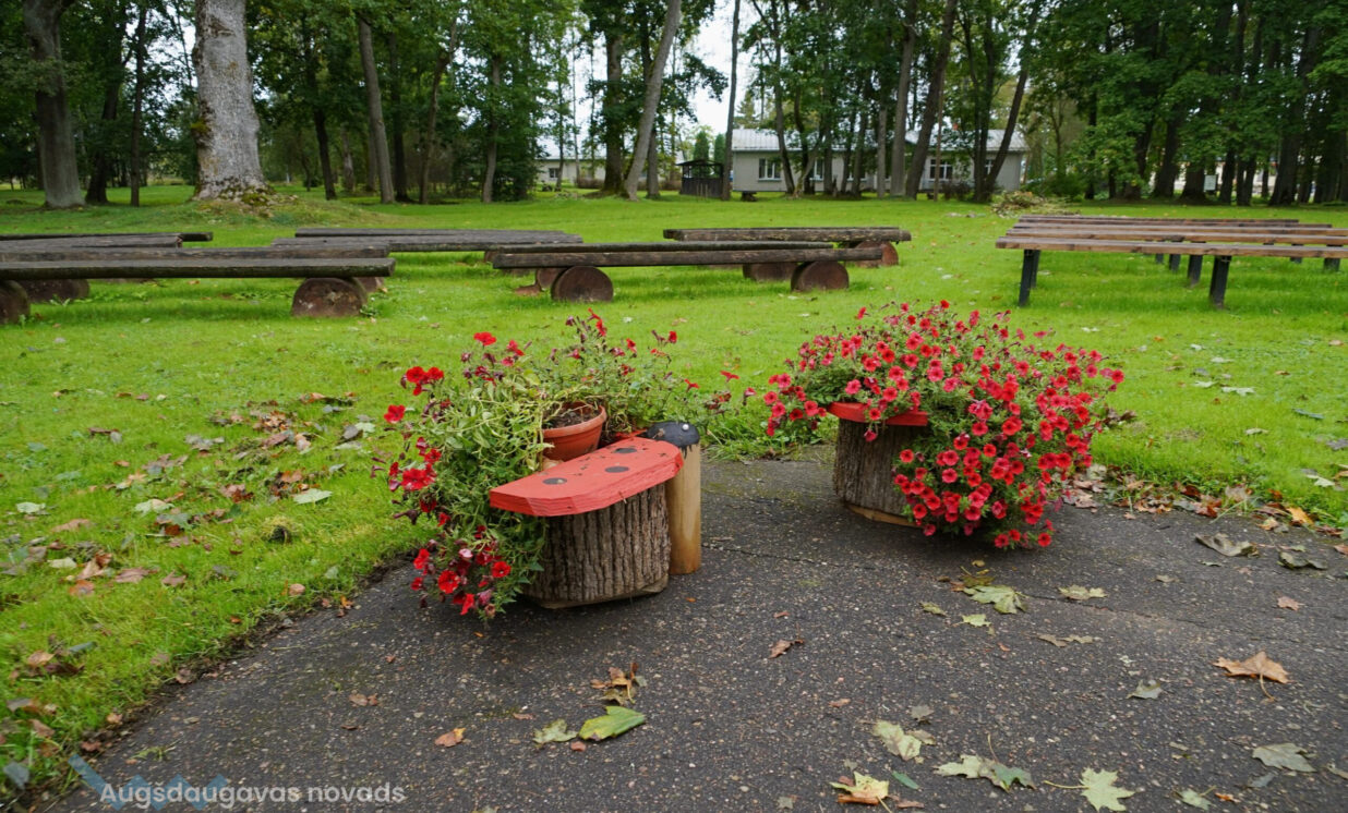 Pateicoties Augšdaugavas novada pašvaldības atbalstam, biedrība ķērās pie pirmās ieceres īstenošanas, vasarā sarīkoja lielu talku, lai sakārtotu Vaboles parka “sirdi” – estrādi un tās apkārtni, kur agrāk atradusies Vaboles muiža, bet mūsdienās notiek brīvdabas pasākumi, pulcinot vietējos uz sarunām un kopīgu laika pavadīšanu. Biedrības vadītājs Antis Danilevičs stāsta, ka kopīgiem spēkiem tika attīrīts estrādes asfaltbetona segums no vecajām sūnām un dubļiem. Sapuvušie koka soliņi tika demontēti un vietā izgatavoti jauni – tika nokrāsotas soliņu metāla kājas, nomainītas un nostiprinātas soliņu brusas, kā arī nokrāsotas ar speciālo krāsu kokam ārdarbiem. Materiālus sarūpēja pagasta uzņēmēji. Vietējais amatnieks Varis Vilcāns izgatavoja skaistas ziedu kastes -gan rotātas ar jautrām bizbizmātēm, gan ar senajām latvju aizsargzīmēm. Nereti vietējiem patīk Vaboles pagastu salīdzināt ar kukaini bizbizmārīti, tāpēc puķu kastes tapa kā simbols Vaboles nosaukumam.