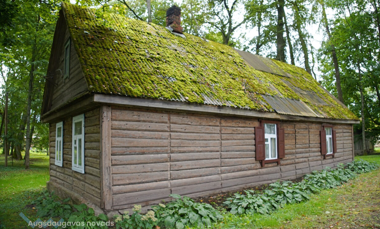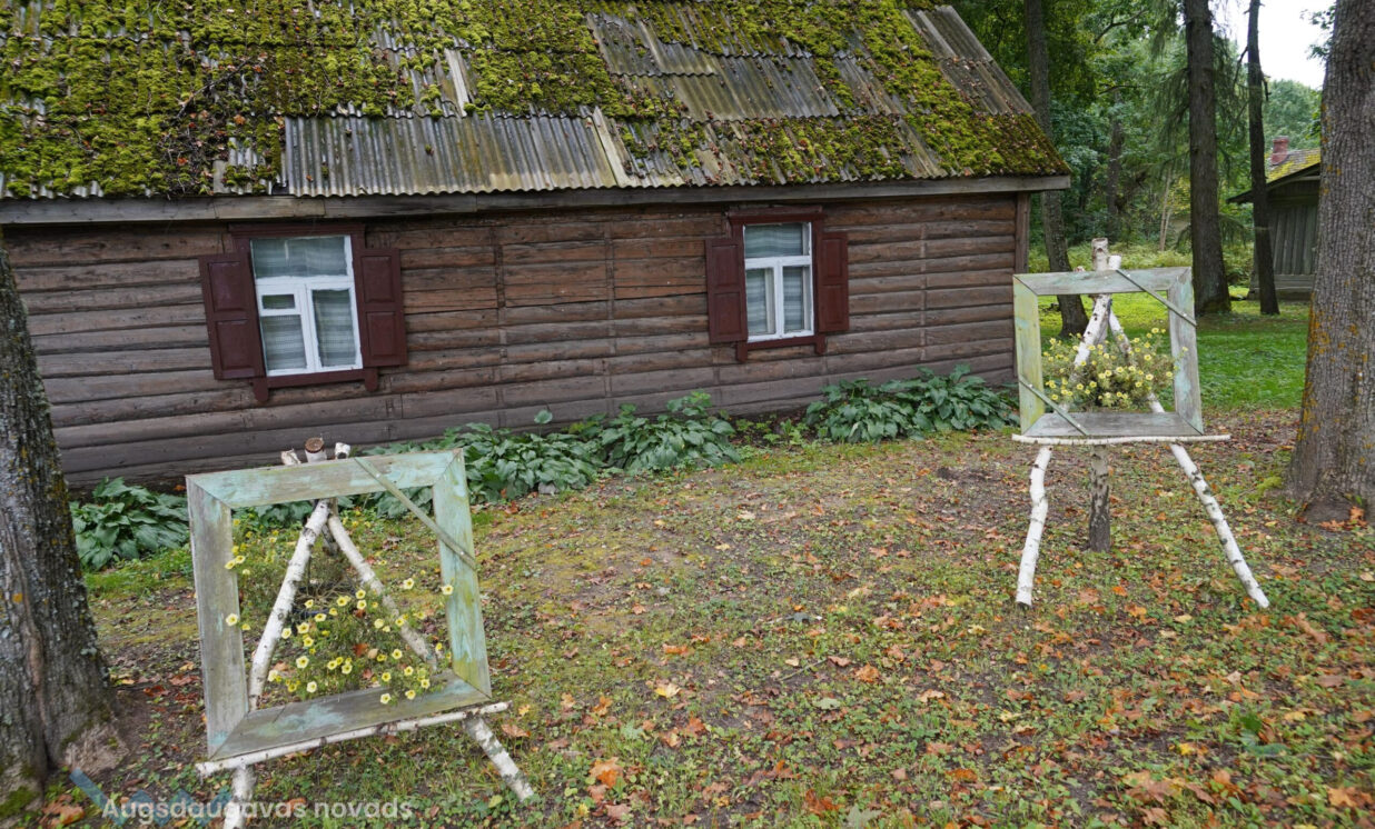 Biedrības aktīvisti šai mājai noņēma apkārtesošo melno ruberoīdu, atklājot seno latgaliešu celtniecības metodi – skaistus baļķus ar sūnu siltinājumu. Mājas iepriekšējie īrnieki bija nokrāsojuši logu rāmjus zilā krāsā, kas vietējiem asociējas ar slāvisko kultūru. Šis krāsojums tika aizstāts ar baltu krāsu. Arī apkārtne ap māju tika sakopta, pie mājas ceļa pusē novietoti vasaras sezonas dekori – stilizēti rāmji ar ziediem.