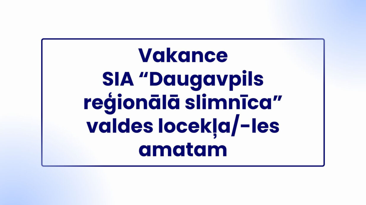 • Gatavība amata pienākumus veikt klātienē SIA “Daugavpils reģionālā slimnīca”.