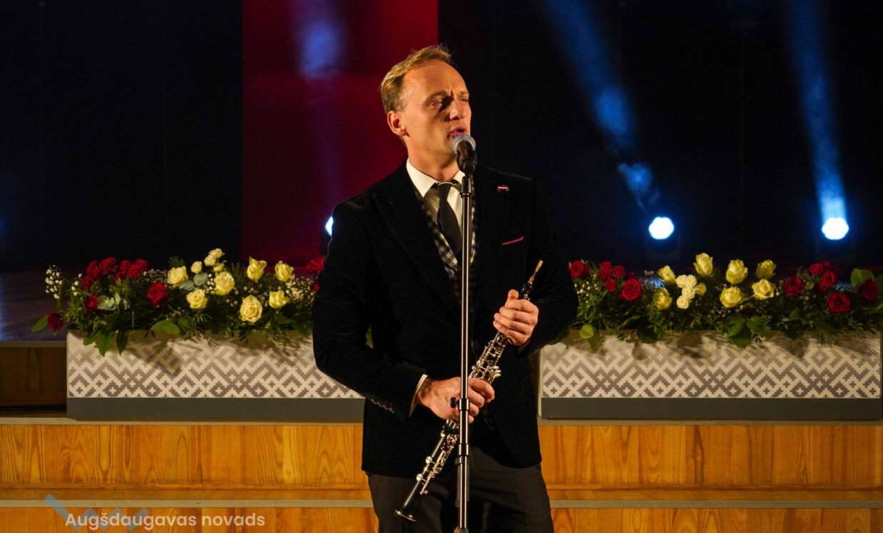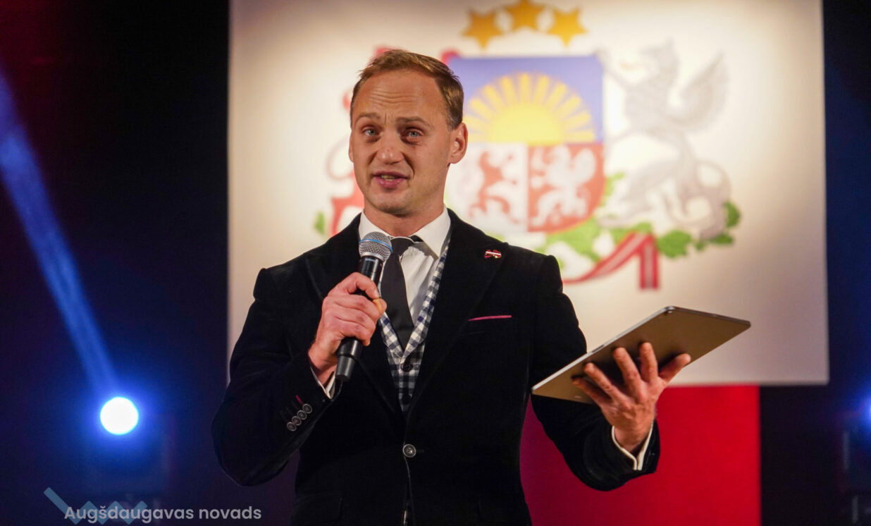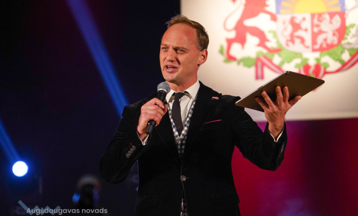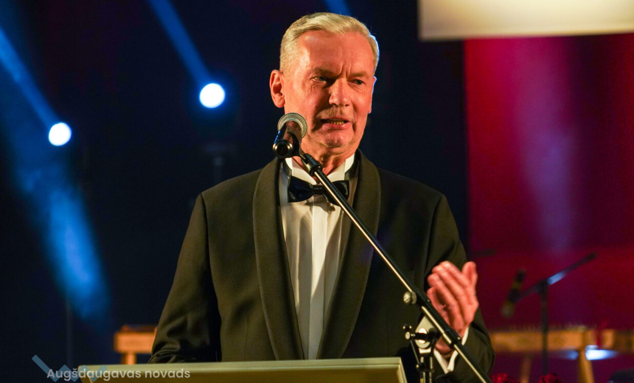 Uzrunājot klātesošos, Augšdaugavas novada pašvaldības domes priekšsēdētājs Vitālijs Aizbalts uzsvēra, ka valsts spēks sākas ģimenē, kur bērns pirmo reizi dzird dziesmu par Latviju, mācās valodu, cieņu un darba mīlestību. “Mūsu novadā aug zinoši un uzņēmīgi bērni – viņi mācās skolās, piedalās kultūras dzīvē, pēc tam dodas tālāk, lai studētu un gūtu jaunu pieredzi. Mēs no sirds ceram, ka daudzi no viņiem atgriezīsies – ar jaunām zināšanām, idejām un mīlestību pret mūsu novadu. Šogad esam piešķīruši jau divus grantus reemigrantiem – tas apliecina to, ka mūsu novads gaida savējos atgriežamies mājās.” Domes priekšsēdētājs atgādināja, ka mūsdienās mēs saskaramies ar jauniem pārbaudījumiem - sarežģītu ģeopolitisko situāciju, kad valsts drošība ir kļuvusi par vienu no galvenajām rūpēm ne tikai valsts mērogā. Viņš aicināja ikvienu rīkoties, meklēt risinājumus, uzdrīkstēties un atbalstīt vienam otru. V. Aizbalts pateicās uzņēmējiem, kuri turpina radīt iespējas novadam, ikvienam iedzīvotājam, kas kopj savu sētu, piedalās kultūras dzīvē un godprātīgi dara savu darbu. “Mums ir pienākums turpināt iesākto – stiprināt un veidot vidi, kurā bērni aug drošībā, jauniešiem ir daudz iespēju, pieaugušiem ir darba vietas, ģimenes dzīvo pārticībā un pret senioriem ir cieņpilna attieksme. Pateicos ikvienam no jums par to, ka kopā attīstām un stiprinām mūsu Augšdaugavas novadu un Latviju. Latvija ir mūsu zeme. Mūsu lepnums. Mūsu atbildība. Un Latvijas stāsts top ik dienas – dziedāts, rakstīts un darīts.”