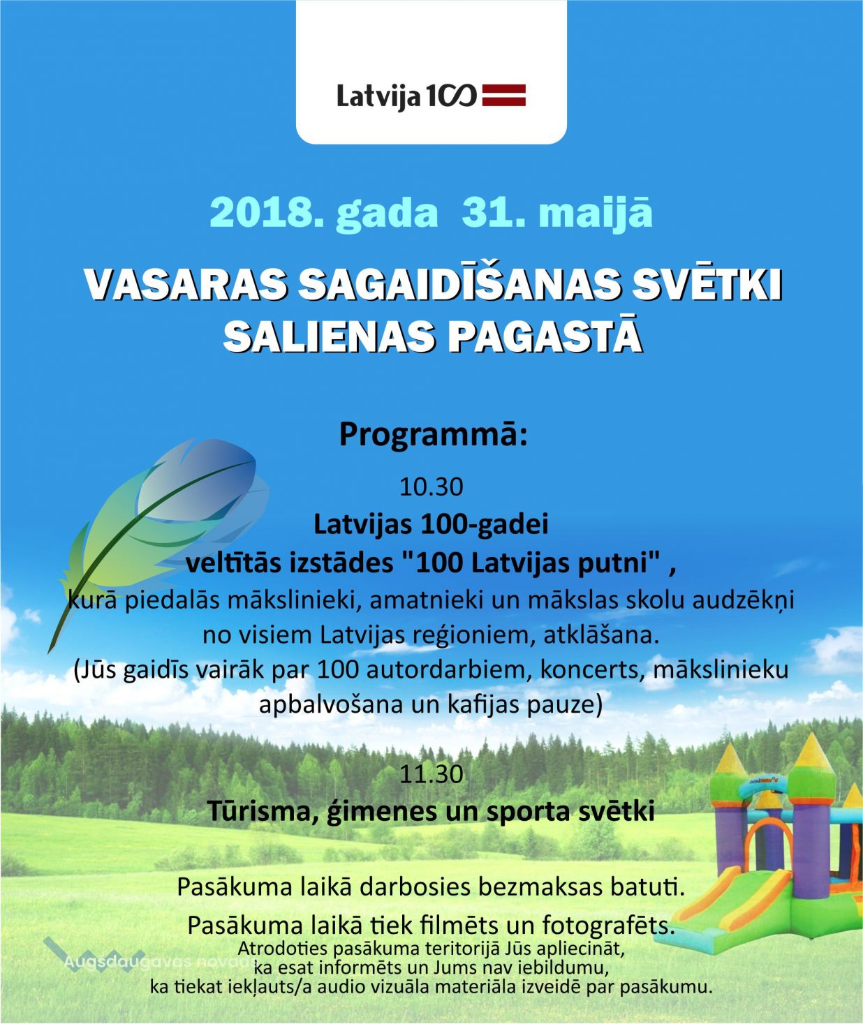 31. maijā plkst. 10:30 Salienas pagastā atzīmēs Vasaras sagaidīšanas svētkus.