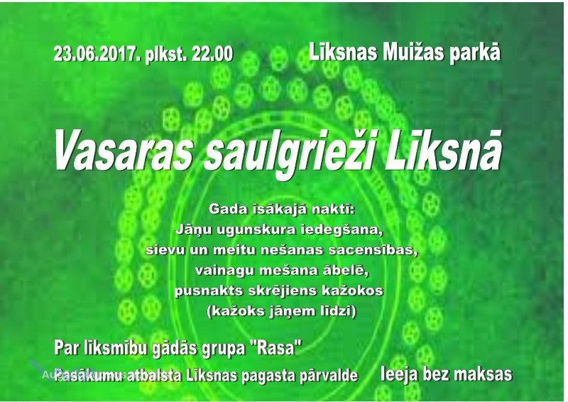 Pusnaktī varēsiet pārbaudīt savu izturību, veicot skrējienu kažokos. Par jautrību Jāņu nakts zaļumballē gādās grupa "Rasa". Šo pasākumu atbalsta Līksnas pagasta pārvalde.