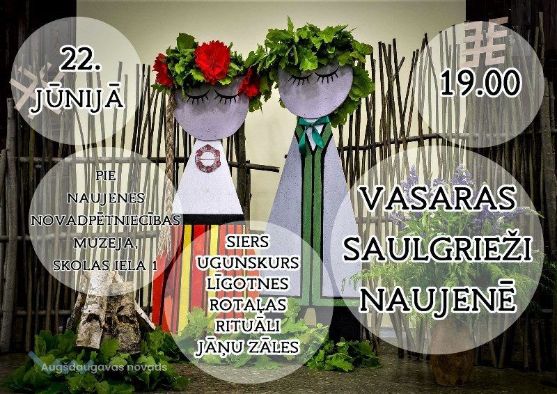 22. JŪNIJĀ plkst. 19.00 aicinām mazus un lielus LĪGOTĀJUS piedalīties VASARAS SAULGRIEŽU svinēšanā NAUJENĒ.