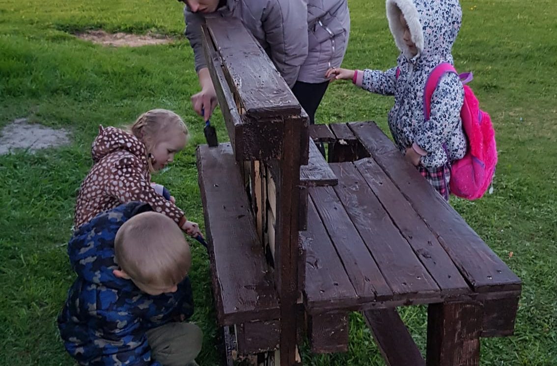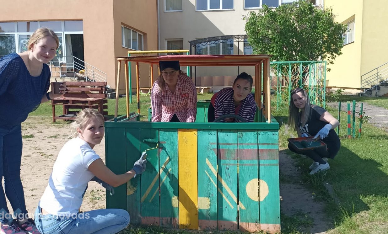 Pēc Iestādes Padomes ierosinājuma laikā no 24. aprīļa līdz 24. maijam tika rīkotas vecāku talkas ar mērķi labiekārtot grupu āra rotaļu laukumus. Ik pa laikam iestādes teritorijā valdīja rosība. Skolotājas ar vecākiem stādīja darbu sarakstus, kuros bija iekļauti nelieli uzdevumi, kā arī ieplānoti lielāki darbi. Saimniecības vadītāja un mūsu strādnieks iepriekš plānoja, kas nepieciešams darbu veikšanai, lai nodrošinātu talciniekus ar nepieciešamo. Darba uzdevumos tika iekļauti - puķu stādīšana, jaunu aktivitāšu centriņu veidošana un uzstādīšana grupu laukumos, grupas laukuma robežu palielināšana, pārvietojot žodziņu, laukumos izvietoto objektu krāsošana. Liels paldies visiem vecākiem, kas atrada laiku un parūpējās padarīt mūsu pirmsskolas iestādes vidi sakoptāku, bērniem tīkamāku. Bet vislielākais ieguvums ir labais piemērs par sadarbību, darba mīlestību un ticību, ka kopā varam paveikt daudz!