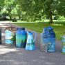 Lielākoties mākslinieki izvēlējās uz kannām attēlot dabas ainavas – Medumu ziedošās pļavas un ezeru.