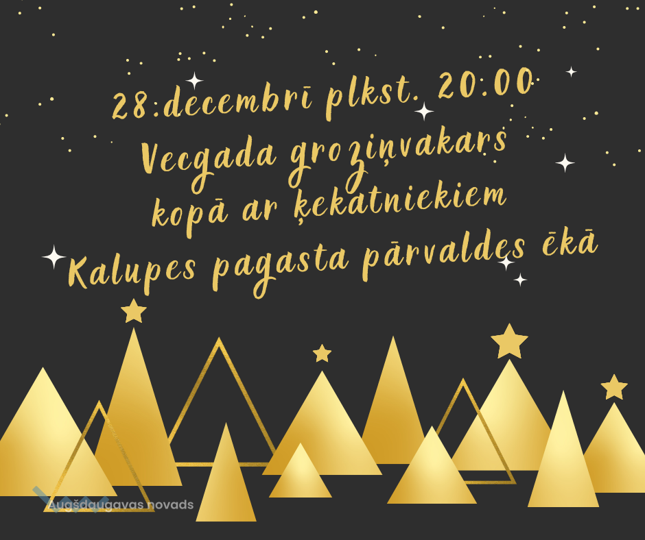 Aicinām uz Vecgada groziņvakaru 28.decembrī plkst. 20.00 Kalupes pagasta pārvaldes ēkā. Akrtivitātes, spēles, rotaļas kopā ar ķekatniekiem!