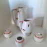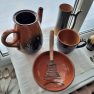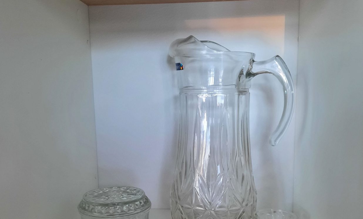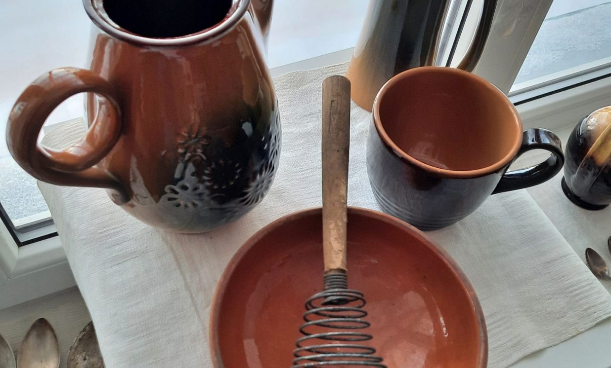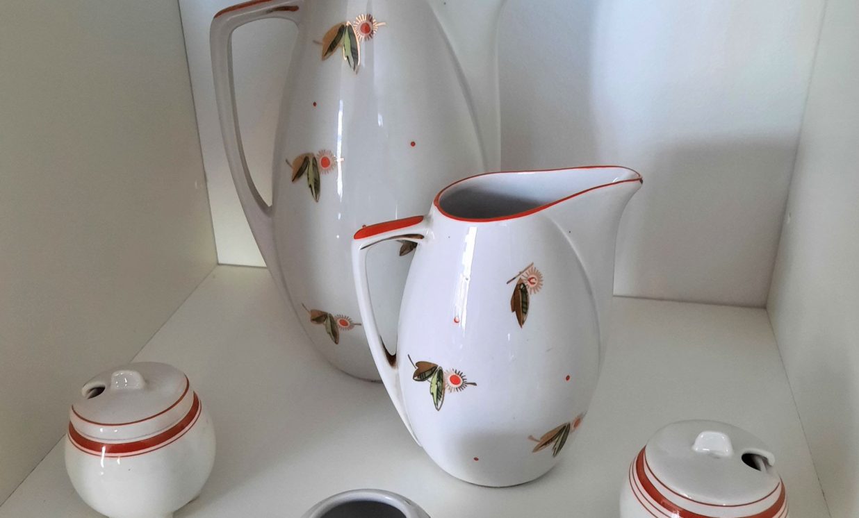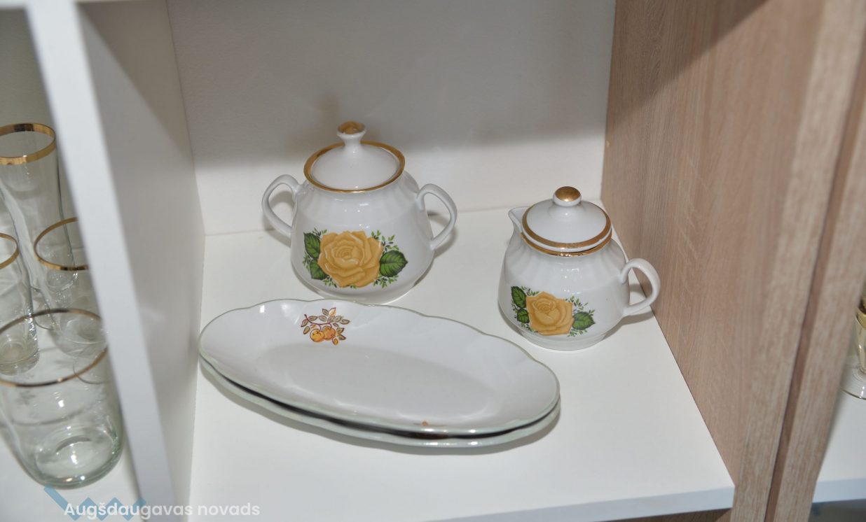 Izstādē ir aplūkojami dažādi trauki – zupas terīnes, šķīvji, tējas servīzes, glāzes, galda piederumi, arī lielās krūkas, sauktas Latgalē par išbuoniem.