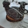 Daudzi trauki, ko senāk servēja galdā dažādos svētkos, kāzās un bērēs, mūsdienās vairs netiek izmantoti, bet vietā nākuši mūsdienīgi trauki. Īpaši eksponāti izstādē ir īpašās čuguna formas, kurās kāzu saimnieces senāk cepa lielās kūkas zaķa vai aitiņas veidolā. Šādas kūkas agrāk bija viens no galvenajiem galda rotājumiem, greznots ar baltu glazūru, bet mūsdienās vairs netiek gatavotas. “Cik atceros no bērnības, neviens kāzu galds nebija iedomājams bez šīs lielās skaistās formas. To grieza, dalīja un ēda,” atmin muzeja direktore. Arī pašas čuguna formas, kurās tika cepts gardums, ir liels retums, taču Annai paveicies atrast kādas saimnieces meitu, kura bija saglabājusi savas mammas virtuves piederumus.