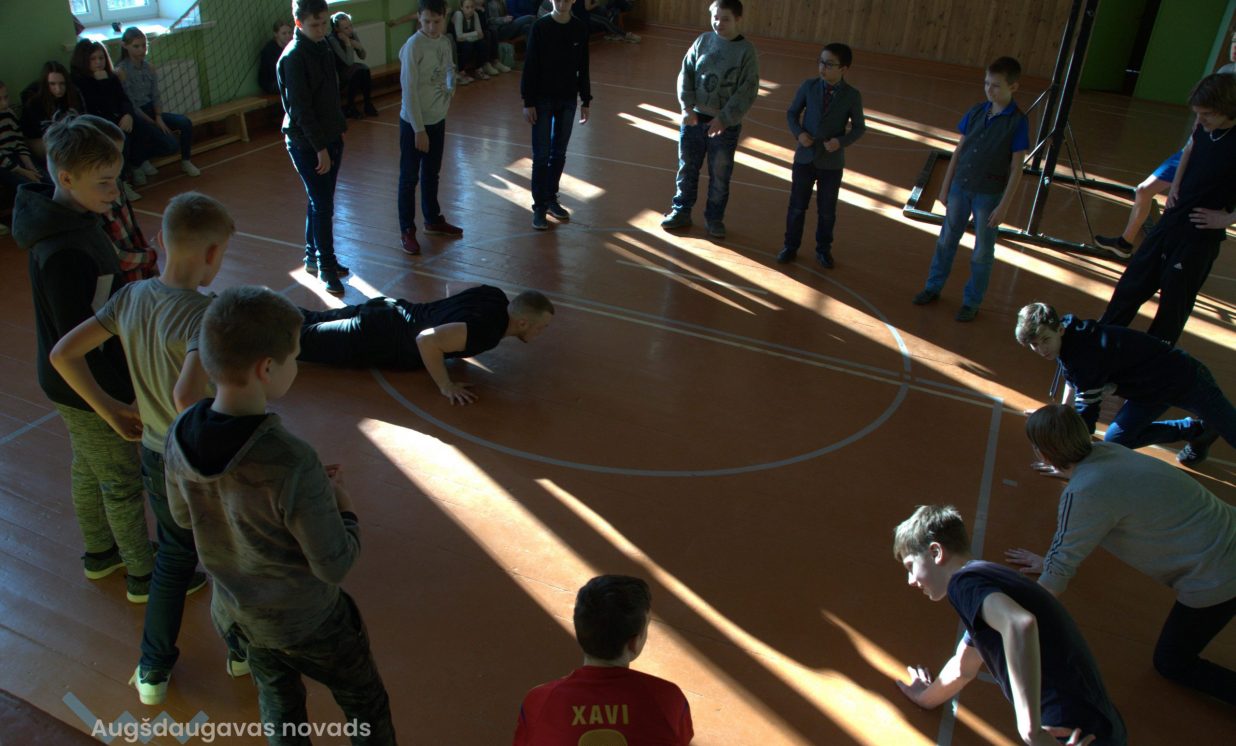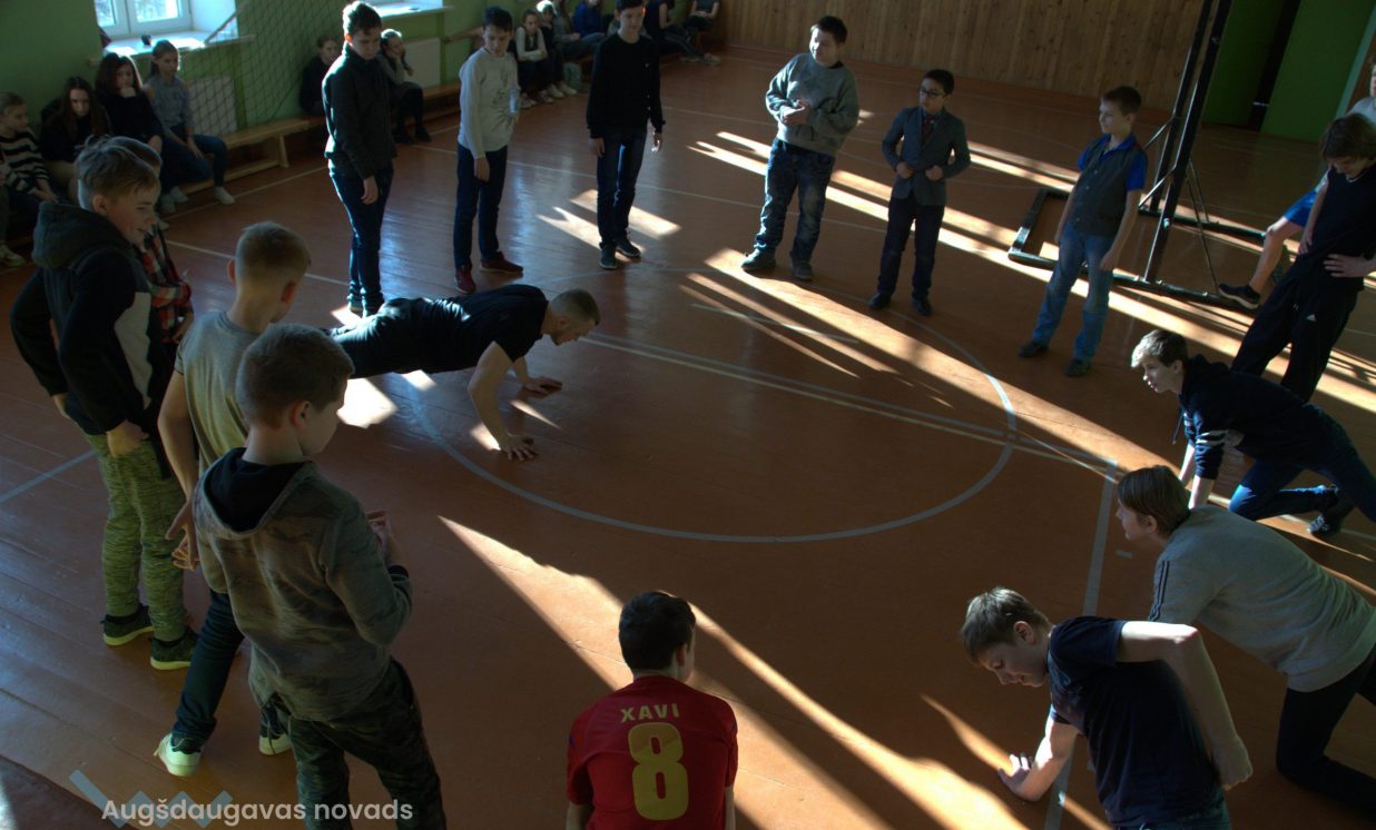 7. februārī Daugavpils novada Salienas vidusskolā Eiropas projekta (Nr. 9.2.4.2/16/I/070 „Pasākumi vietējas sabiedrības veselības veicināšanai un slimību profilaksei Daugavpils novadā”) ietvaros norisinājās pasākumi, kuros tika pievērsta uzmanība vietējās sabiedrības veselības veicināšanai un slimību profilakses pakalpojumiem Daugavpils novada iedzīvotājiem. ES projekts ir sācies 2017. gada jūnijā, un visā tā garumā paredzētas kopumā 164 vietējā mēroga aktivitātes. Veselības veicināšanas projekts patlaban jau tika īstenots lielākajā daļā novada skolu, un projekta aktivitātes norisinājās visos pagastos. Mērķauditorija ir dažāda – tie var būt kā paši mazākie, tā arī darbaspējas vecuma cilvēki, un seniori. Šoreiz uzmanība tika pievērsta Salienas vidusskolas audzēkņiem. 118 audzēkņi piedalījās Veselības dienas pasākumos, kur tie apguva veselīgā uztura un fizisko aktivitāšu, ne tikai teorētiskās, bet arī praktiskās nodarbības. Veselības dienā Salienas vidusskolā stundas novadīt tika paaicināti 3 speciālisti – fizioterapeite Karīna Jadčenko, psiholoģe Sanita Feldmane un uztura speciāliste Veronika Avdejeva. Uztura speciāliste Veronika Avdejeva bērniem novadīja lekcijas, meistarklases un izglītojošās aktivitātes, kas ir vērstas veselīgā uztura pamatprincipu izzināšanai. Kā atzīst pati Veronika, ar bērniem tika pārrunāti tādi jautājumi kā uztura šķīvja nozīme, dažādu produktu grupas, cukura lietošana u.c. Vecākajām klasēm tika rīkotas komandu stafetes, diskusijas par dažāda veida atkarībām, kā arī konfliktu risināšanu. Sportiskā dzīvesveida popularizēšanas pasākumos ieradās ielu vingrotāju grupa, kura sākumā demonstrēja savas vingrošanas prasmes, bet vēlāk iesaistīja dažādās aktivitātēs arī jauniešus. Biedrības ”Ielu vingrotāji” pārstāvis Genādijs Petrovs pastāstīja jauniešiem par šo sporta veidu, kā tajā nodarboties, ko var sasniegt, un kā kopumā izskatās šis sporta veids: ”Uztaisījām sacensības, lai paši jaunieši pamēģinātu kaut ko šajā nozarē, šajā sporta veidā, pamēģinātu dažādus vingrinājumus uztaisīt.” Genādijs Salienas vidusskolas jauniešus raksturo kā dzīvespriecīgus, sportiskus, labi attīstītus, arī kā bērnus ar potenciālu. Ielu vingrotāji šajā skolā viesojas jau otro reizi un atzīst, ka salīdzinot ar iepriekšējo reizi, audzēkņiem ir redzams pozitīvs progress fiziskajā attīstībā. Skolēnus tāpat piesaistīja fizioterapeita nodarbībām, kā arī tika rīkota veselīga uztura pauze. Jau no paša nosaukuma var izspriest, ka veselīgo uzkodu pauzē ēdieni bija sagatavoti pamatojoties uz veselīgā satura pamatprincipiem. Jaunatne izgaršoja gaļas ēdienus ar dārzeņiem, riekstus, kā arī augļus. No dzērieniem – tēja un ūdens ar citroniem. 4. klases skolotāja Gaļina Mizare atzīst, ka bērniem viss pat ļoti garšojis, un šķīvji tika ātri vien iztukšoti. ”Ir pabūts gan pie uztura speciālista, gan pie fizioterapeita, ka arī psihologa”, stāsta 11. klases audzēkne Anastasija Zavadska. Viņasprāt vērtīgākās ir nodarbības ar psihologu: ”Tiem bērniem, kuri ir pusaudža vecumā, viņu dzīvē ir daudz problēmu, kuras jāpalīdz atrisināt.” Projekta kopējās izmaksas sastāda 308 790 EUR, no tiem Eiropas Sociālā fonda līdzfinansējums sastāda 85% jeb 262 471,50 EUR. Projekts turpināsies līdz š.g. 31. maijam. Autors: Dainis Bitiņš