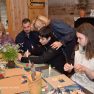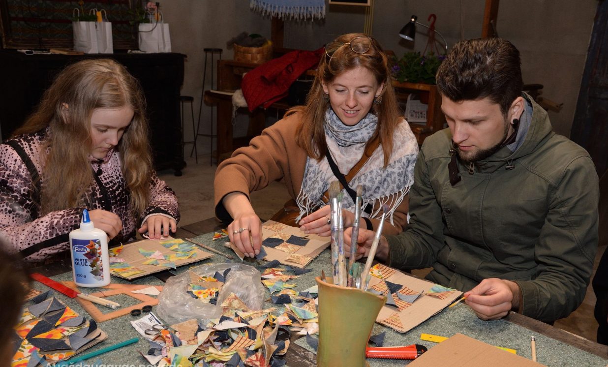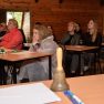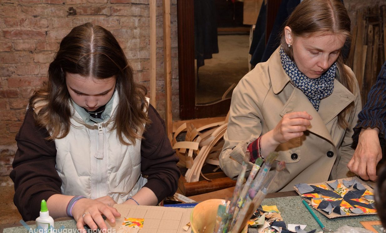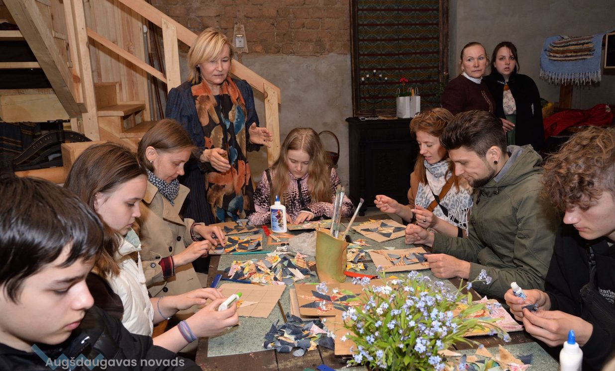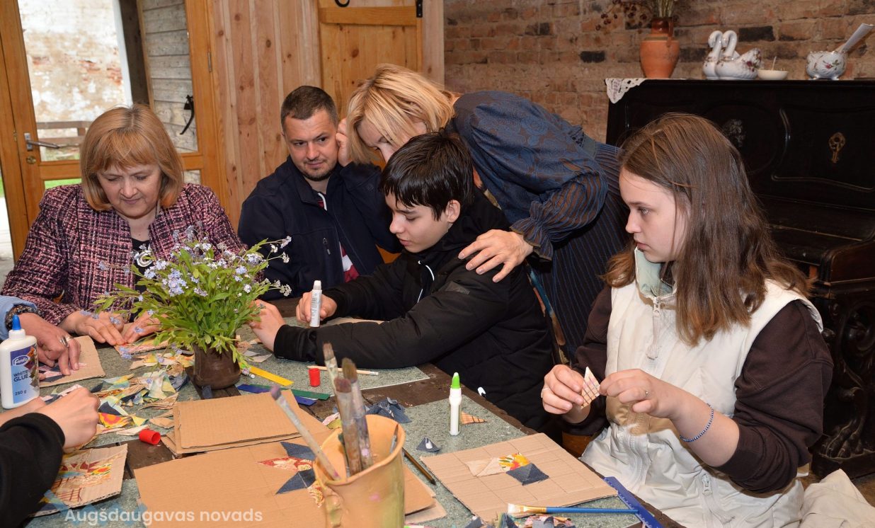 Raiņa mājas Berķenelē direktore Inese Bērziņa pārtapa par skolas direktori un, iezvanot pirmo zvanu plkst. 12.00, aicināja ikvienu klātesošo piedalīties darbmācības stundā, ko vadīja šūšanas mākslas meistare Rasma Ivbule. Skolēni bija sajūsmā par iespēju radoši darboties, veidojot dažādas auduma aplikācijas, kas noritēja mierīgā un patīkamas sarunas rosinošā atmosfērā. Stunda pagāja ātri un zvans aicināja doties starpbrīdī, ko visi pavadīja, mielojoties ar siltiem plāceņiem Pliekšānu gaumē.