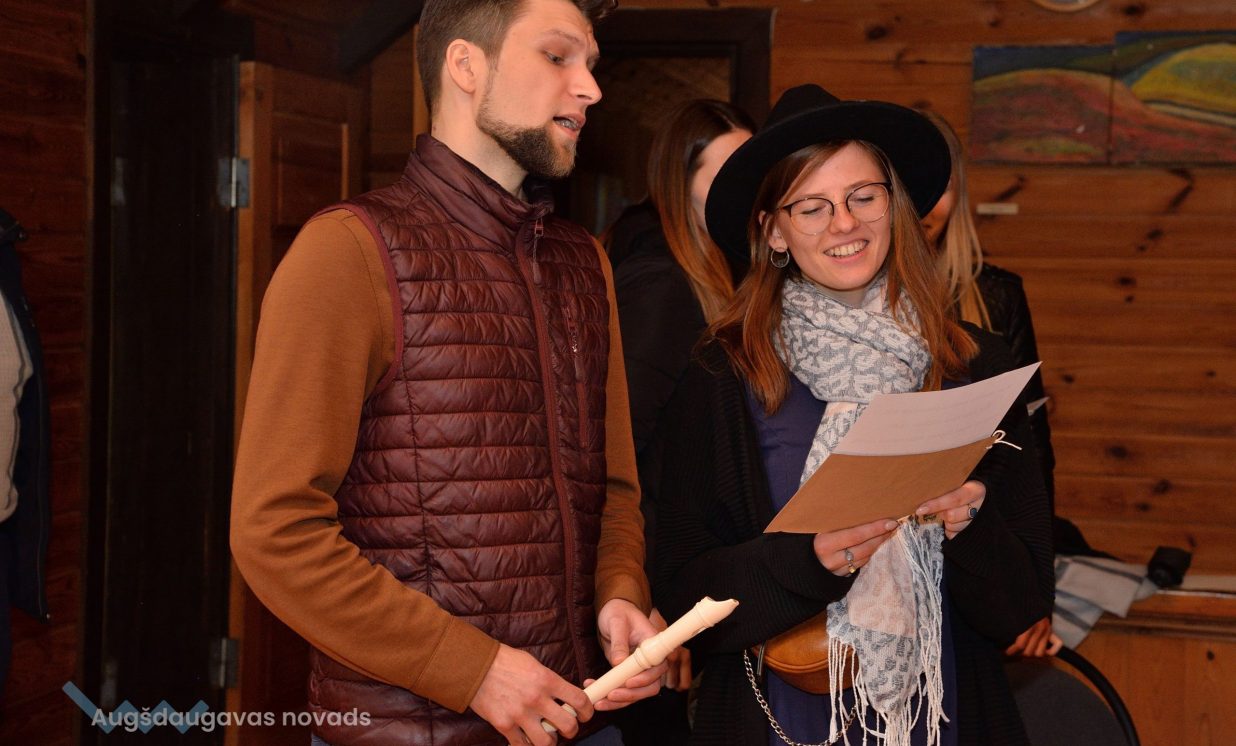 Turpinājumā visi tika aicināti atvilkt elpu no mākslinieciskām izpausmēm un ieslīgt latgaliešu rakstu valodas pareizrakstības likumu līkločos. Latgaliete Eva Bogdāne auditorijai izklāstīja dažus svarīgākos latgaliešu rakstu valodas likumus ar piemēriem, aicinot iesaistīties diskusijās un interesantās sarunās. Skolotāja aicināja nākt pie tāfeles un rakstīt ar krītu, kas izrādījās ļoti saistoša aktivitāte, jo kāds no skolēniem to nebija darījis vismaz 50 gadus, bet citiem – jaunākiem skolēniem, kas vairāk pazīst digitālās mācības, tā bija pirmā pieredze. Stunda pagāja ātri, tās laikā skolēni apguva ne tikai pareizrakstības noteikumus, bet arī jaunus, nedzirdētus vārdus latgaliski un, kā atzina paši – vairāk apzinājās latgaliešu rakstu valodas vērtību.