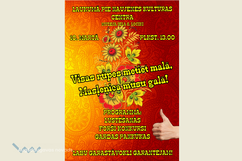 Heijāāā! Ziemas aizvadīšanas lustes nu ir klāt! Mēs garantējam, ka sacelsim kājās ne Locikus vien, tāpēc nav ko sēdēt mājās! 10. martā, svētdien, plkst. 13.00 aicinām pievienoties lustīgajam Masļeņicas svinētāju pulkam. Klausīsimies skanīgākajās balsīs, iekustināsim savus ziemas miegu gulošos ķermeņus, obligāti kāpsim kokā, mielosimies, dedzināsim un vēl, vēl, vēl…