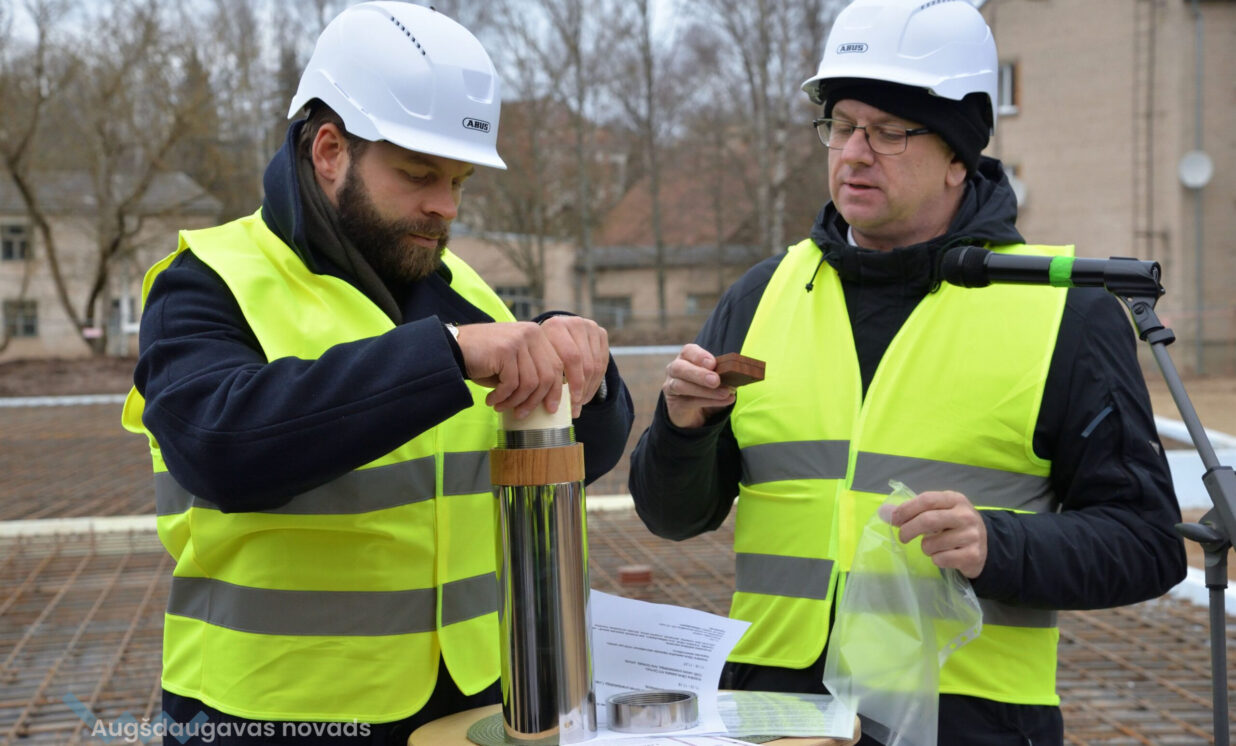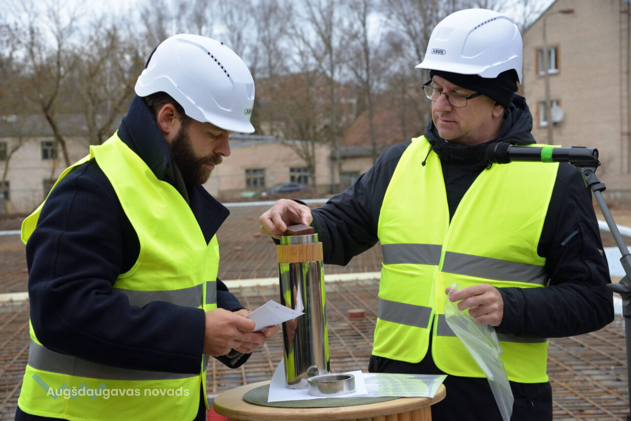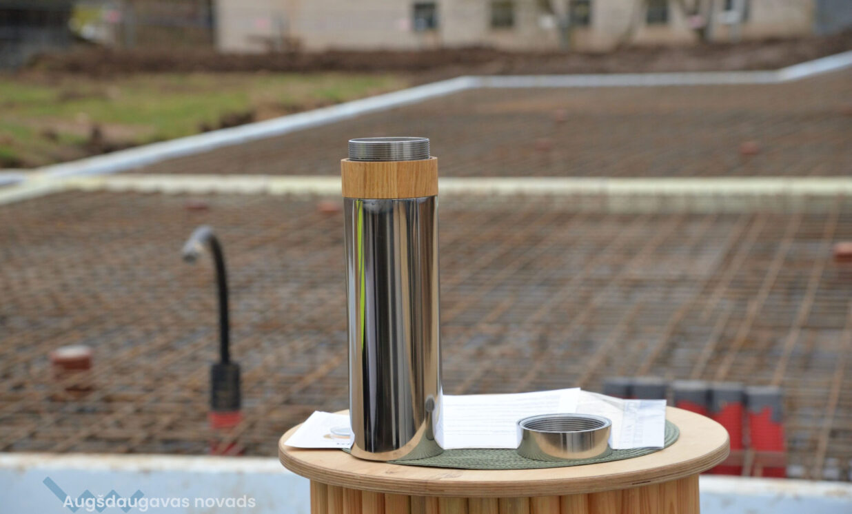 Laika kapsula satur vēstījumu nākotnei, projekta skices, izdevumu “Augšdaugavas novada vēstis” un latviešu simbolikas monētas - kā apliecinājumu šodienas vērtībām un nākotnes cerībām. Kapsulas iebetonēšanā piedalījās Augšdaugavas novada pašvaldības domes priekšsēdētāja 1.vietnieks Jānis Proms un novada pašvaldības izpilddirektors Pēteris Dzalbe, projekta pasūtītājs SIA “Magnum Social & Medical Care” vadītājs Kristiāns Dāvis un SIA “CMB” valdes priekšsēdētājs Artis Dzirkalis.