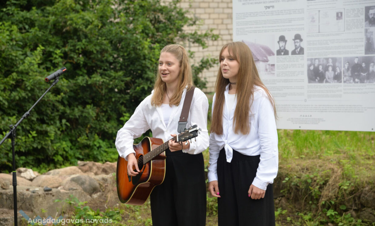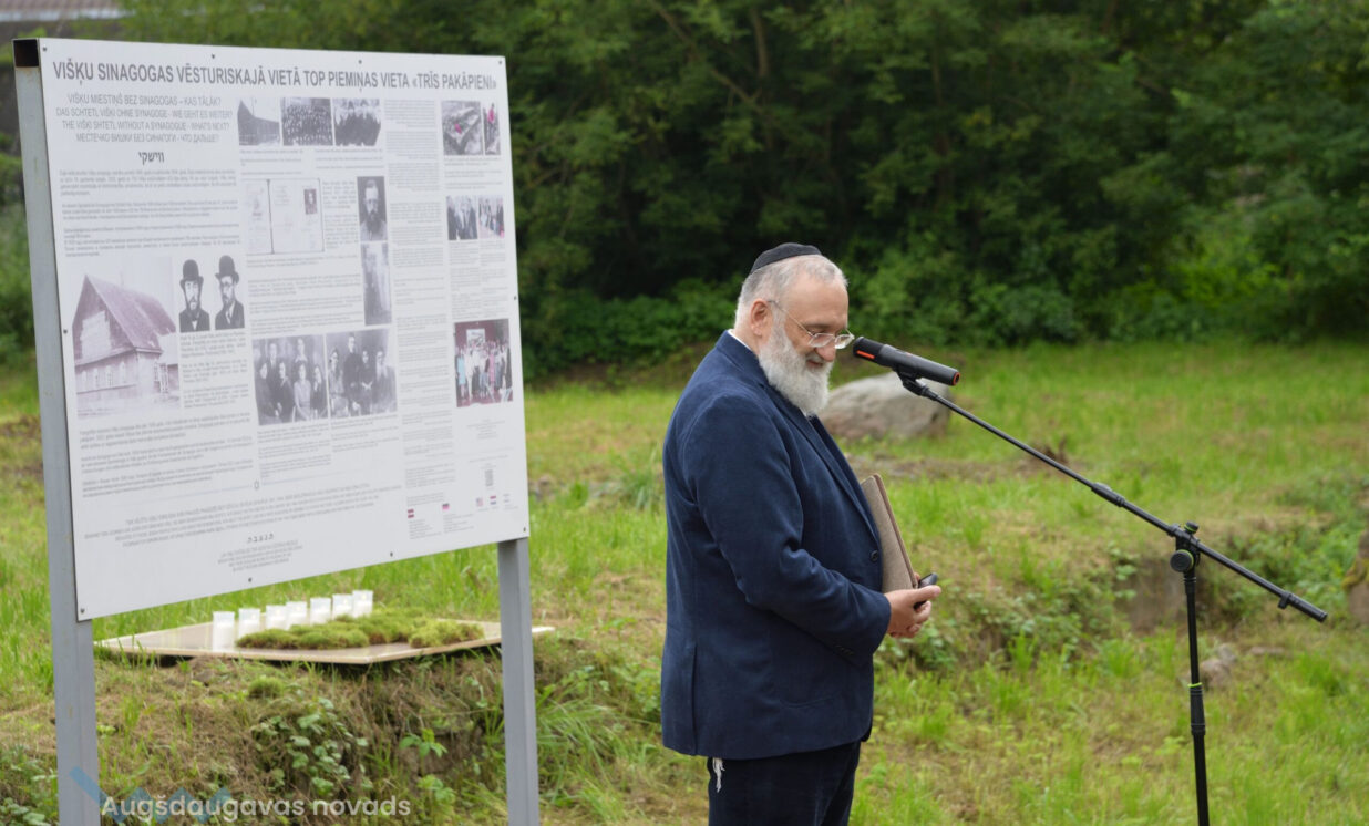 Piemiņas pasākumā sinagogas vietā Baruhs Čauskins kopā ar Daugavpils ebreju kopienas dalībniekiem lūdzās par Holokausta upuriem bijušā Višķu sinagogas piemiņas vietā, Višķu un vācu jaunieši iededzināja sveces.