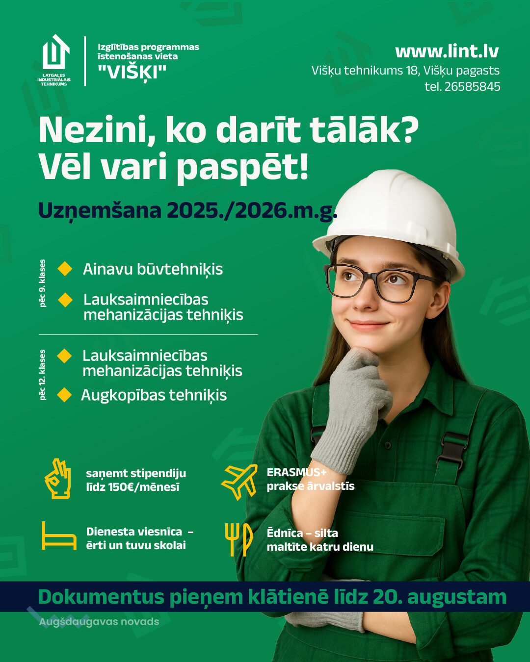 Profesionālās un augstākās izglītības iestādes vasarā uzņem nākamos studentus. Arī Latgales industriālā tehnikuma Izglītības programmas īstenošanas vietā "Višķi" Augšdaugavas novadā tiek gaidīti jaunieši, kuri vēlas apgūt kādu no aktuālām lauksaimniecības profesijām.
