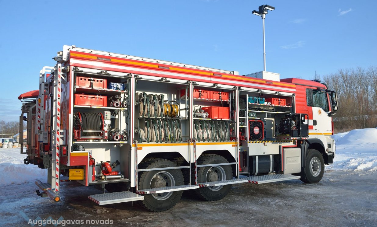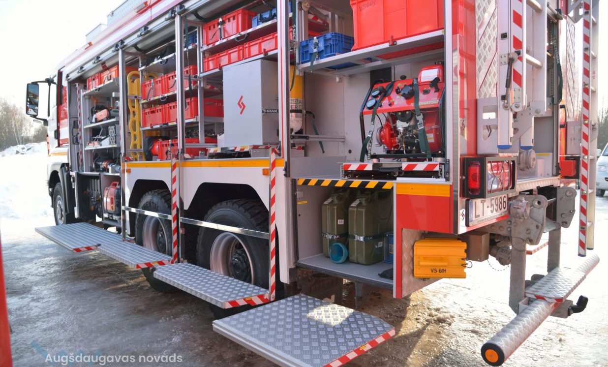 Jaunais specializētais transportlīdzeklis ir pilnībā aprīkots ar modernākajām glābšanas un dzēšanas ierīcēm, kā arī pielāgots Valsts ugunsdzēsības un glābšanas dienesta vajadzībām.