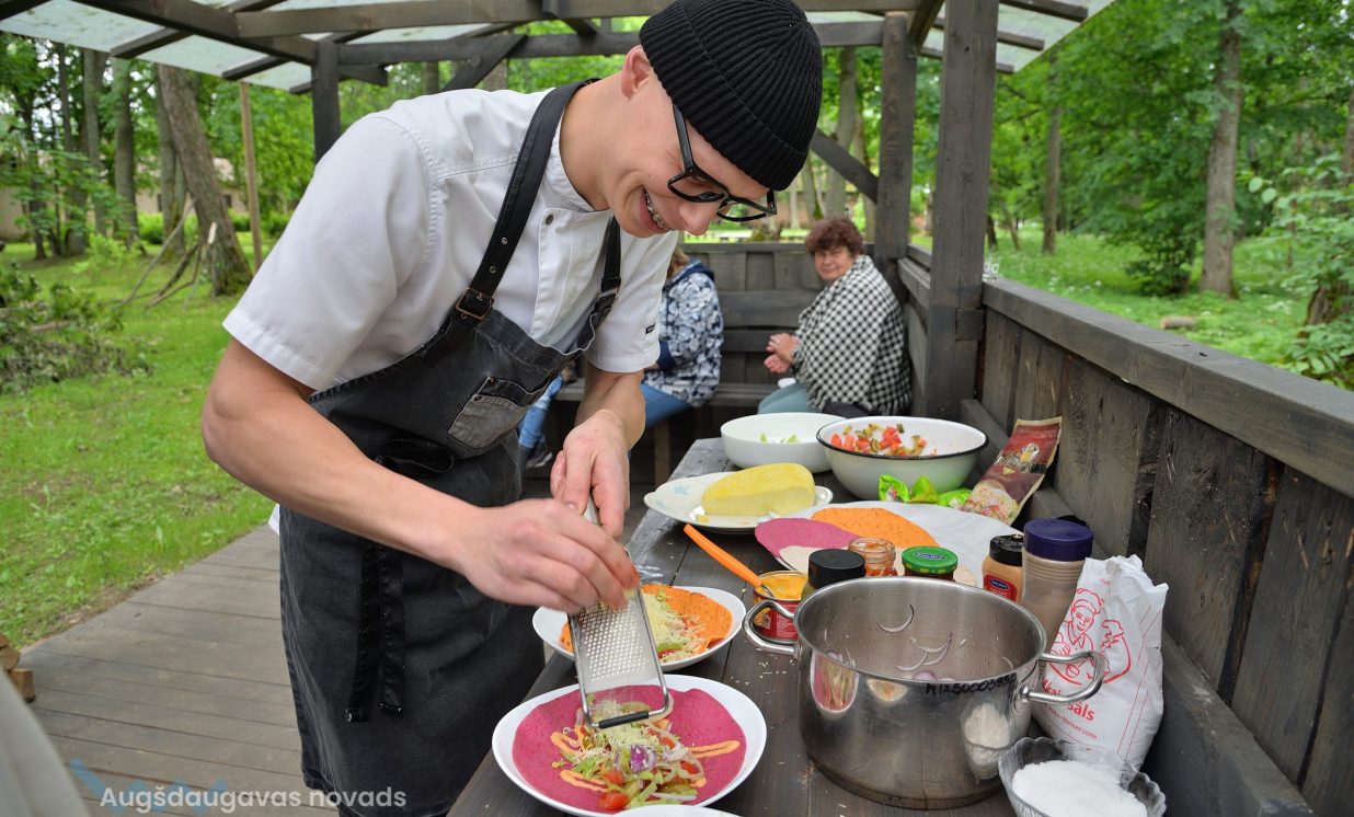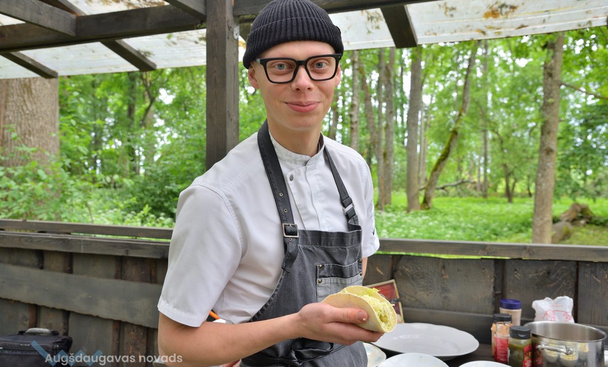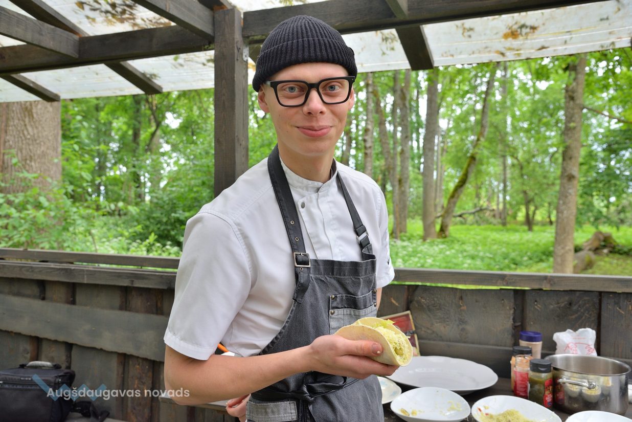 Vienmēr smaidīgs un sirsnīgs – tāds ir kalupietis Haralds Saušs, kuram piemīt īpašs talants aizraut klātesošos un pārsteigt arī ar kādu pavārmākslas šedevru. Vērot pavāra rosīšanos pie katliem ir aizraujoši, jo darbošanos ar virtuves piederumiem un produktiem puisis lieliski apvieno ar kādu jautru stāstu. Saulgriežu laikā viņš uz mirkli iegriezās dzimtajā pusē, lai novadītu meistarklasi pasākuma apmeklētājiem Vabolē.
