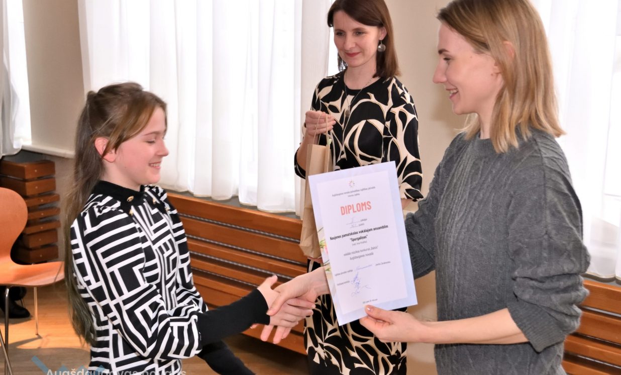Augstākās pakāpes diplomu saņēma Ilūkstes Bērnu un jauniešu centra vokālais ansamblis “Ieklausies” (vadītāja Daina Paukšte, koncertmeistare Judīte Žīgure), kurš 10. martā pārstāvēs Augšdaugavas novadu konkursa otrajā kārtā Rēzeknē. Ansamblis “Ieklausies” esošajā sastāvā darbojas pirmo gadu. Pēc vairākiem meiteņu sastāviem šogad tam pievienojušies puiši. Kolektīvs vēl tikai sāk kopā apgūt muzicēšanas pieredzi. Konkursā ansamblis izpildīja latviešu tautas dziesmu “Sijā auzas, tautumeita” Dainas Paukštes apdarē un dziesmu “Pieguļā” no grupas Auļi & Rodenpoys repertuāra.