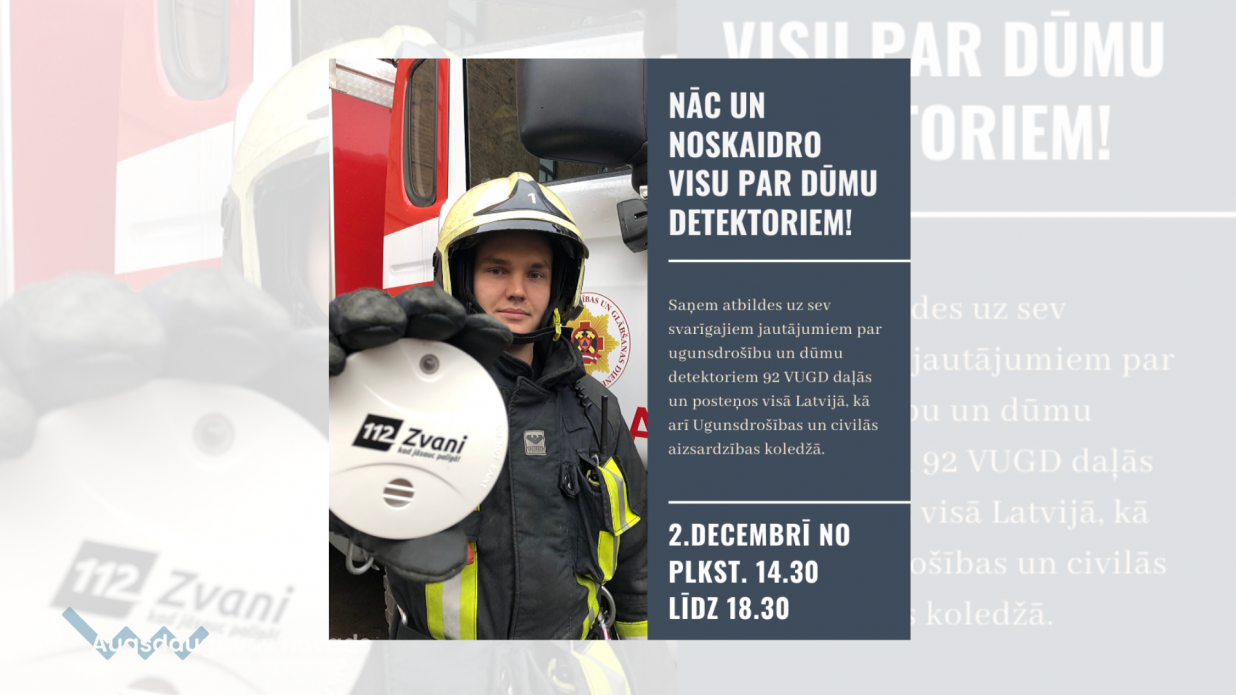 Tuvojoties 2020.gada 1.janvārim, kad visi mājokļi obligāti būs jāaprīko ar dūmu detektoriem, VUGD nodarbinātie no iedzīvotājiem saņem arvien vairāk jautājumus par dūmu detektoriem, piemēram: Kāpēc man tas vajadzīgs? Kur iegādāties? Kā uzstādīt? Cik detektori man ir nepieciešami? Vai detektors obligātu jāuzstāda uz griestiem? Cik ilgi tas ir derīgs? Tāpēc 2.decembrī no plkst. 14.30 līdz 18.30 visiem interesentiem tiks sniegta iespēja saņemt konsultāciju klātienē. Papildus, iedzīvotājiem tiks izdalīti arī informatīvie materiāli un nodemonstrēta dūmu detektora darbība.