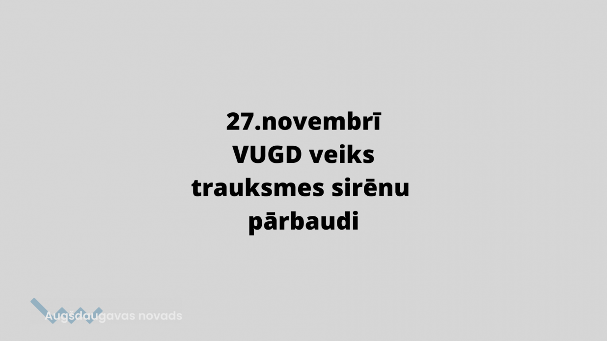 Nākamnedēļ, 27.novembrī, Valsts ugunsdzēsības un glābšanas dienests (VUGD) visā Latvijā veiks trauksmes sirēnu pārbaudi, iedarbinot tās uz trim minūtēm.