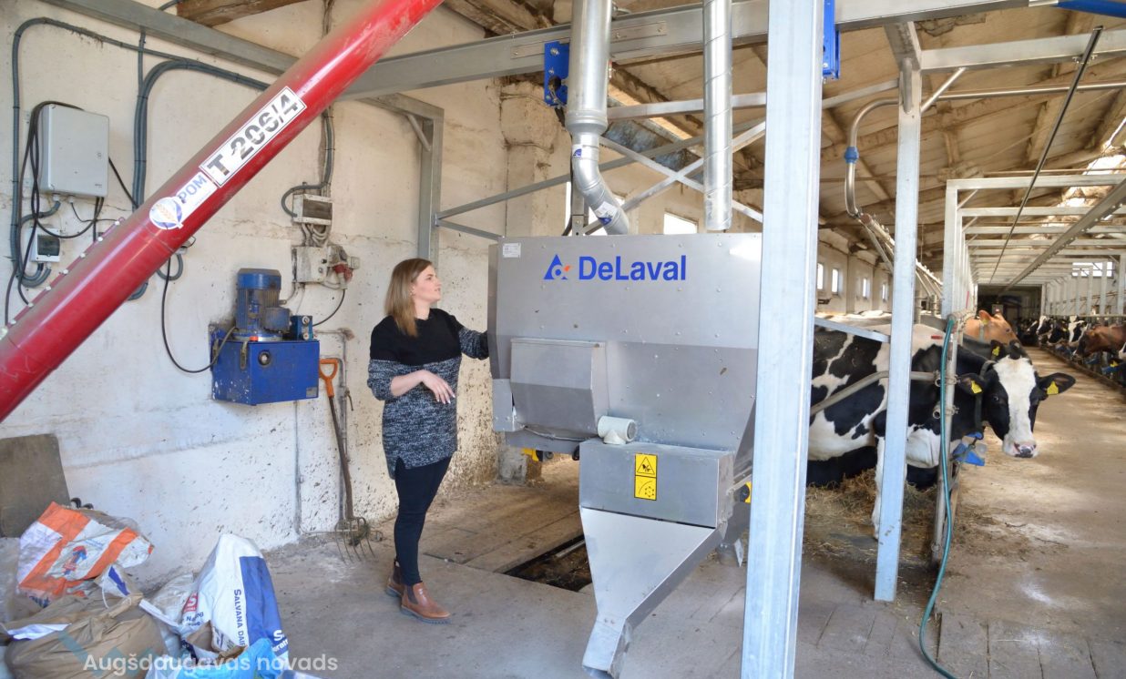 Gotiņas aprūpēt palīdz piena vads un pērn uzstādītais barošanas robots. DeLaval barības robots, atbilstoši programmas uzstādījumiem, katrai gotiņai piegādā atbilstošu uzturu tai nozīmētajās individuālajās devās - gan skābsienu un sienu, gan spēkbarību ar nepieciešamajiem vitamīniem. “Datu bāzē tiek ievadīts konkrētais uztura plāns katrai govij, čips nolasa govs atrašanās vietu un iedod tai paredzēto devu,” jauno tehnoloģiju demonstrē Inese. “Rakstot projektu par lopbarības robota iegādi, ierakstījām, ka, barojot govis ar sasmalcinātāku barību un mazākās porcijās, govij labāk strādās kuņģis un tā izdalīs mazāk metānu. Pie mūsu zaļās domāšanas, šis kritērijs nostrādāja kā liels pluss,” smejas Pēteris.