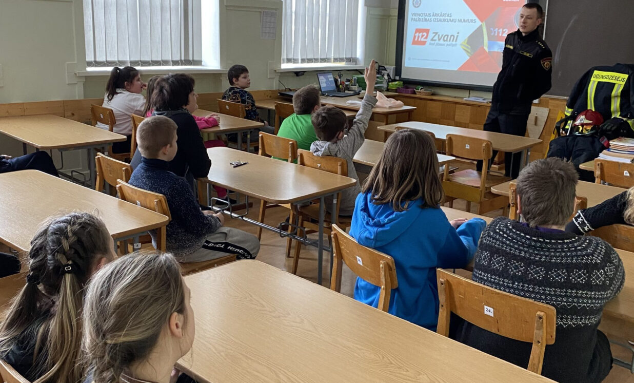 16. februārī Zemgales vidusskolā ciemojās Valsts ugunsdzēsības un glābšanas dienesta (VUGD) Daugavpils posteņa komandieris Dainis Slavinskis. Viņš tikās ar 4.-6.klases skolēniem, lai pastāstītu par to, kā darbojas ārkārtas palīdzības izsaukuma numurs 112. Skolēni uzzināja, ka šis numurs Latvijā darbojas jau 27 gadus un ka ar tā starpniecību var griezties pēc palīdzības gan pie policijas, gan ugunsdzēsējiem, gan pēc neatliekamās medicīniskās palīdzības. Tāpat skolēni uzzināja, ka ir izveidota lietotne "112 Latvija", kuru var instalēt savā viedtālrunī un apdraudējumu gadījumā dispečeri redzēs, kur atrodas zvanītājs, kā arī ir jauna mājaslapa www.112..lv, kurā ir apkopoti drošības padomi pareizai rīcībai dažādos apdraudējumos. D.Slavinskis atgādināja, ka šis numurs nav domāts blēņām un izklaidei, ikvienam ir jābūt atbildīgam, jo tas kādam var maksāt dzīvību. Noslēgumā skolēni uzdeva jautājumus par ugunsdzēsēja profesiju, par mācību iespējām, drosmīgākie pielaikoja ugunsdzēsēja formas tērpu.