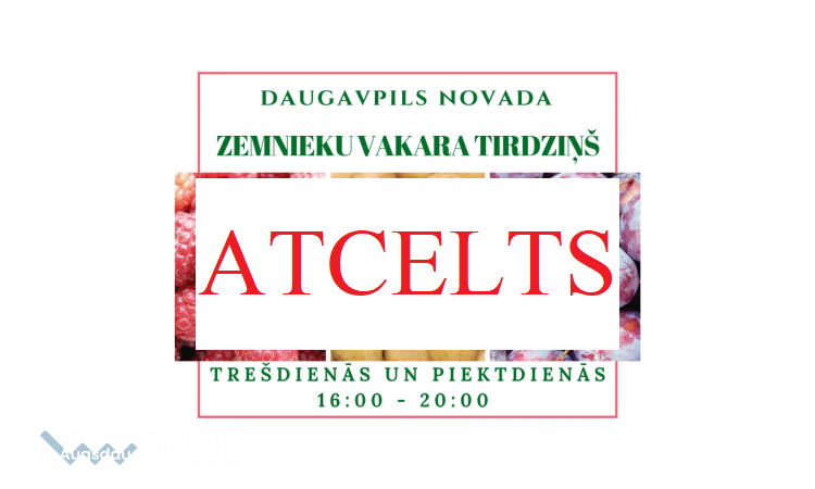 Informējam, ka sakarā ar izsludināto Ārkārtas stāvokli, Zemnieku vakara tirdziņa norise apturēta no 14. marta līdz 12. maijam!