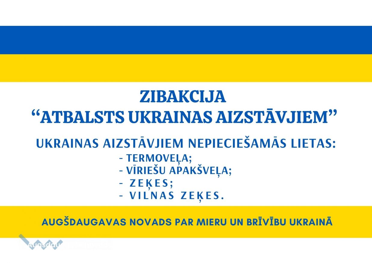 Aicinām iesaistīties akcijā un nogādāt nepieciešamās lietas Augšdaugavas novada pašvaldības pagastu pārvaldēs vai Augšdaugavas novada pašvaldības centrālajā administrācijā (Rīgas ielā 2, Daugavpils).