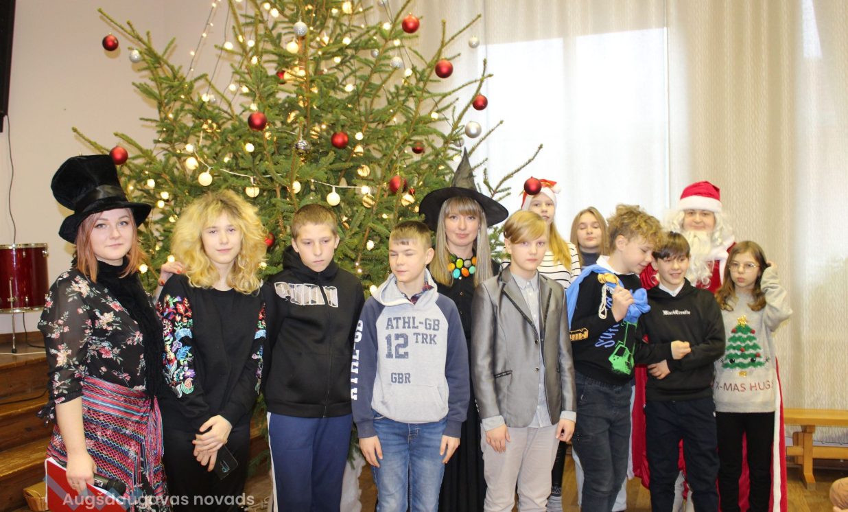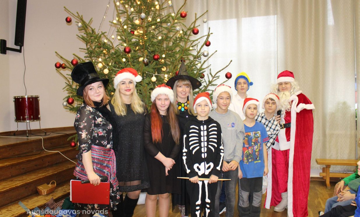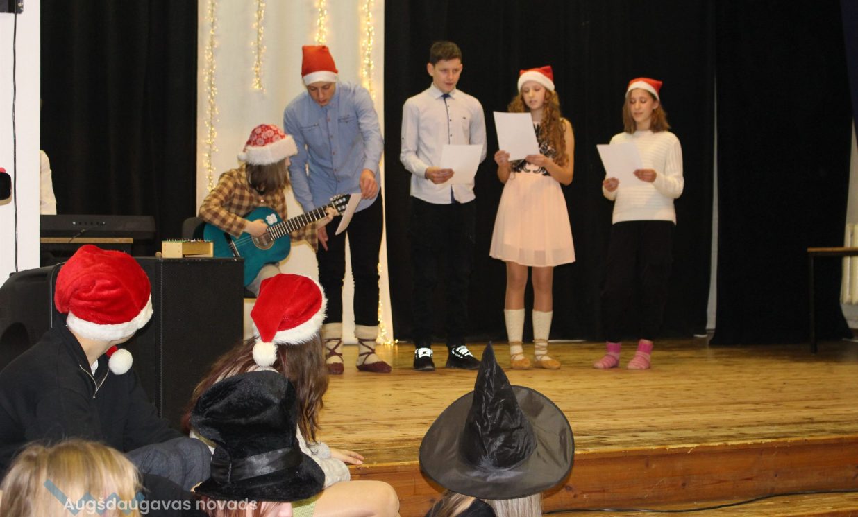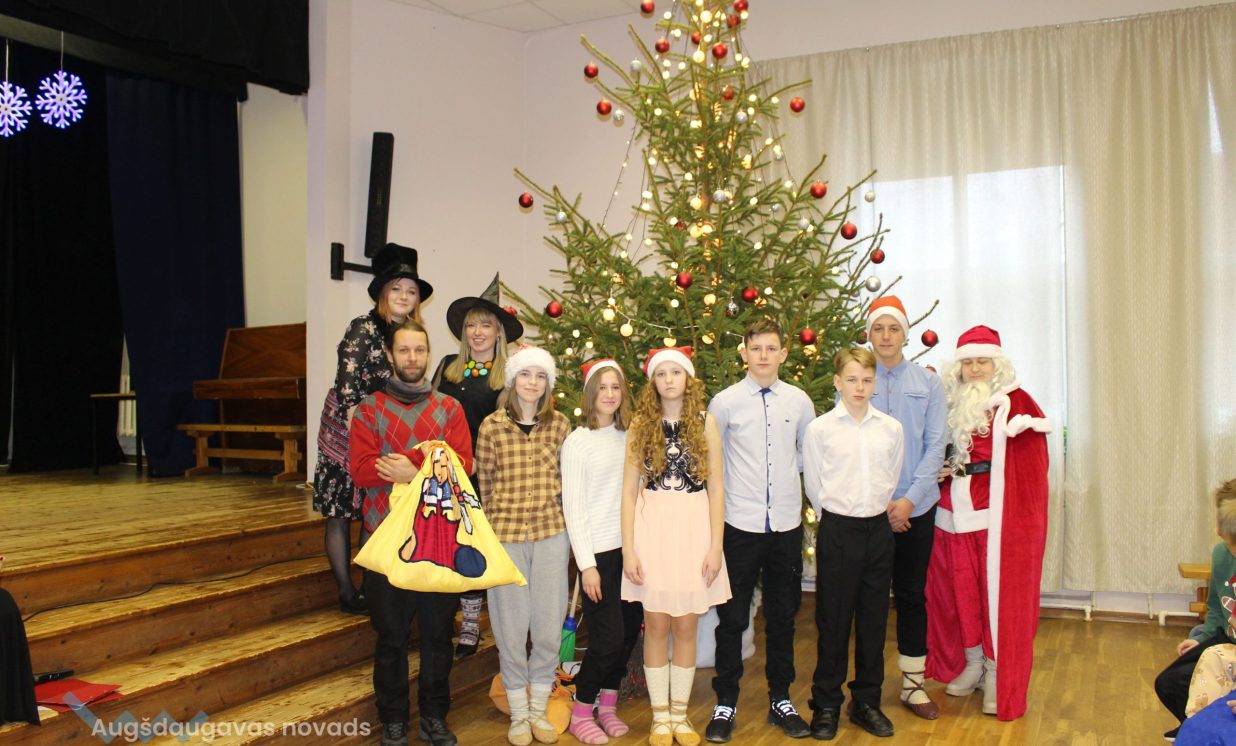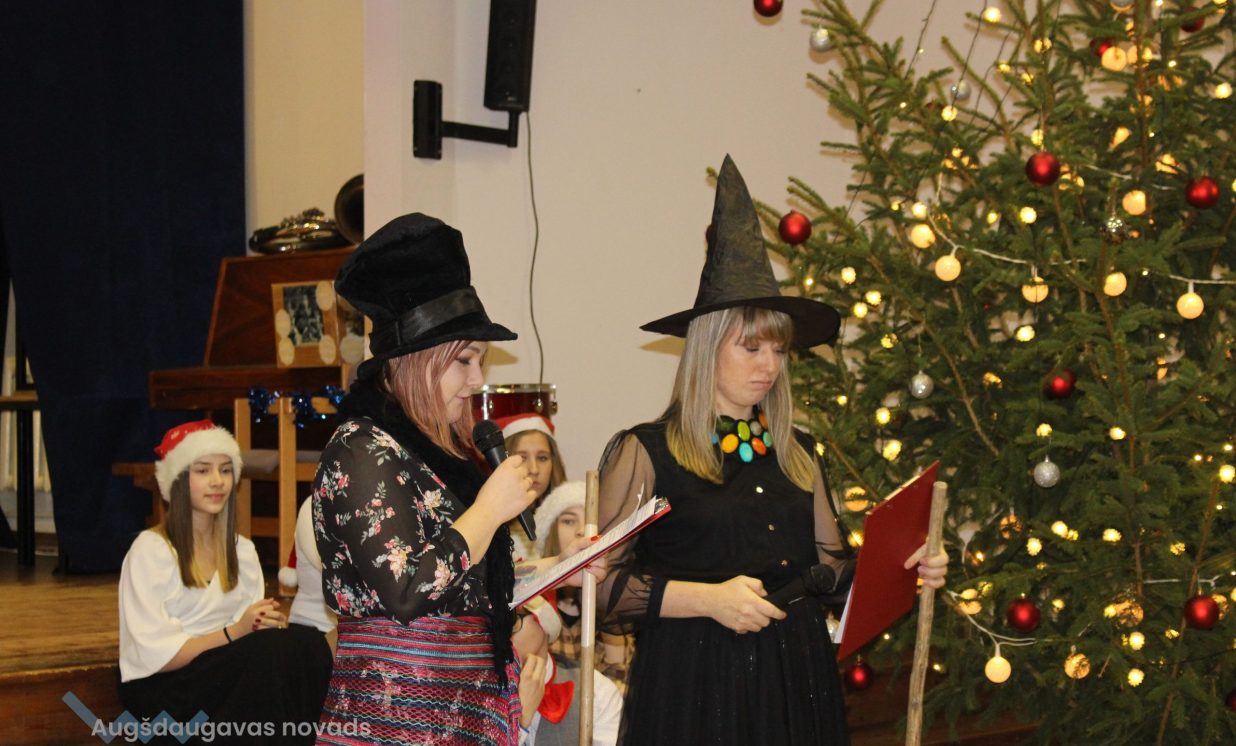 22. decembrī 5. - 9. klašu skolēniem notika Ziemassvētku pasākums. Šogad priekšnesumu veidošanā un rādīšanā iesaistījām vecākus. Paldies vecākiem, kas piedalījās vai palīdzēja sagatavot savu bērnu uzstāšanos! Bija gan visas klases vecāku un bērnu priekšnesums, gan brāļu uzstāšanās, gan mammas un bērnu dziesma, deja un mūzikas instrumentu spēlēšana, kā arī individuālais priekšnesums ar trompetes skaņdarbu un vairāki priekšnesumi ar klašu skolēnu iesaistīšanos. Visu kārtību noteica raganiņas, kas izrādās bija māsas! Tāpēc arī viņas rādīja māsu kopīgo muzikālo priekšnesumu. Raganiņām palīdzēja rūķi. Viņi ienesa Ziemassvētku vecīša dāvanu maisus un palīdzēja dalīt dāvanas par priekšnesumiem, kā arī beigās visiem kopā nodejot deju “Piparkūkas danco!”. Ziemassvētku vecītis katrai klasei dāvanu maisu atdeva tikai tad, kad klases skolēni bija atbildējuši uz dažādiem āķīgiem jautājumiem! Visām klasēm ar skatītāju palīdzību tas arī lieliski izdevās.