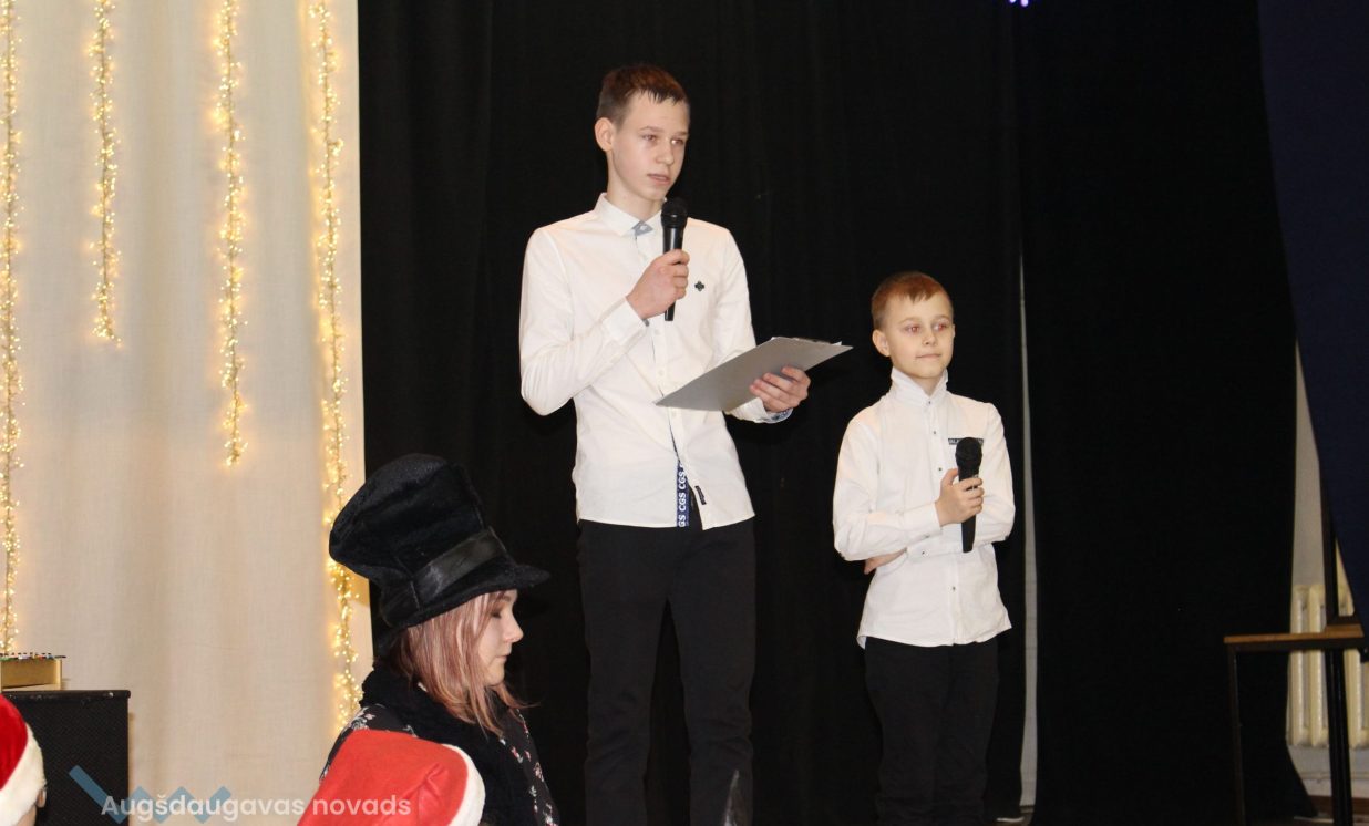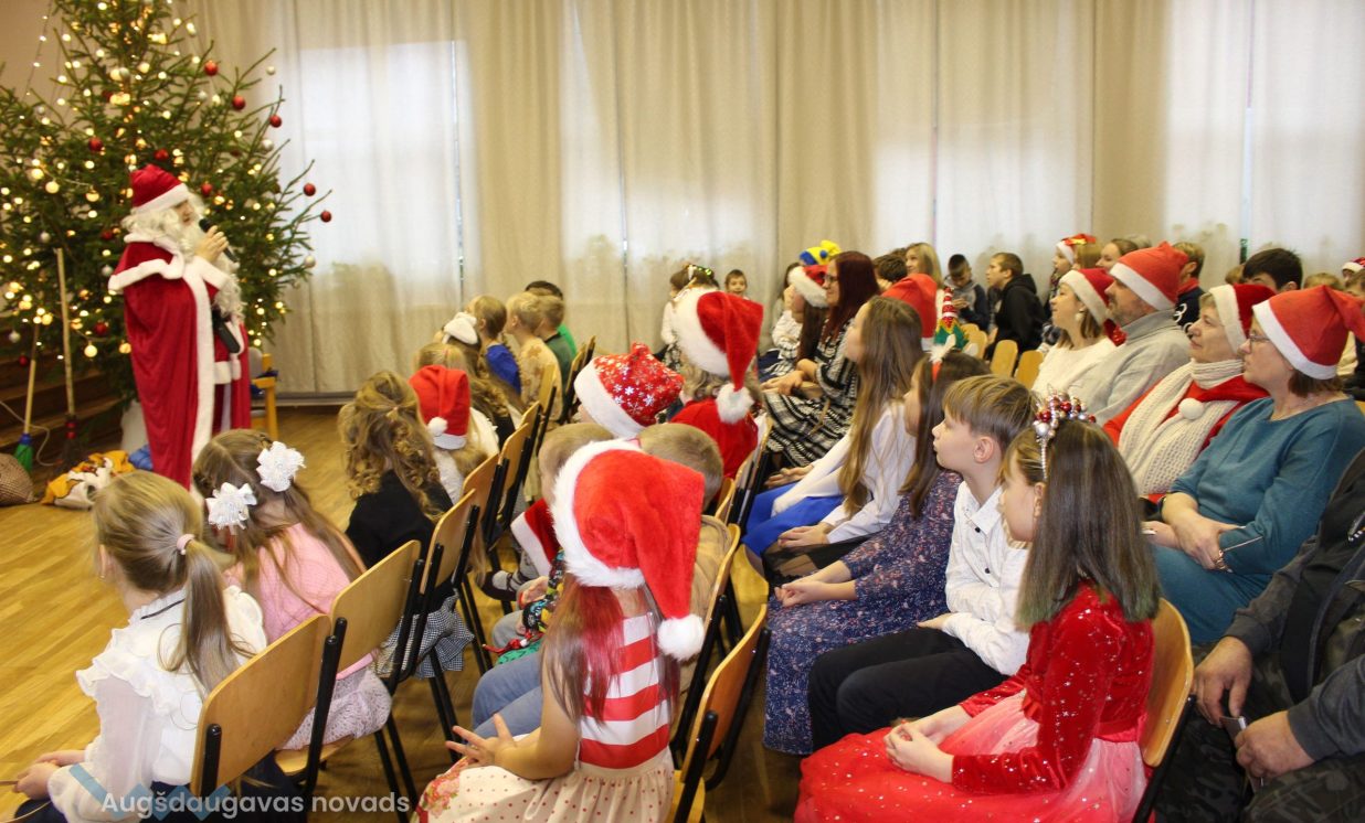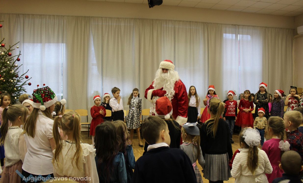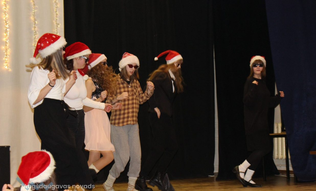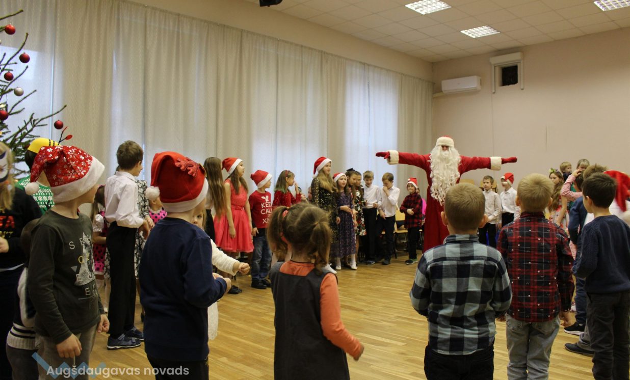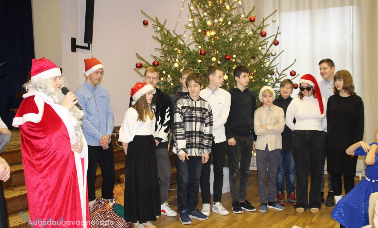 22. decembrī 5. - 9. klašu skolēniem notika Ziemassvētku pasākums. Šogad priekšnesumu veidošanā un rādīšanā iesaistījām vecākus. Paldies vecākiem, kas piedalījās vai palīdzēja sagatavot savu bērnu uzstāšanos! Bija gan visas klases vecāku un bērnu priekšnesums, gan brāļu uzstāšanās, gan mammas un bērnu dziesma, deja un mūzikas instrumentu spēlēšana, kā arī individuālais priekšnesums ar trompetes skaņdarbu un vairāki priekšnesumi ar klašu skolēnu iesaistīšanos. Visu kārtību noteica raganiņas, kas izrādās bija māsas! Tāpēc arī viņas rādīja māsu kopīgo muzikālo priekšnesumu. Raganiņām palīdzēja rūķi. Viņi ienesa Ziemassvētku vecīša dāvanu maisus un palīdzēja dalīt dāvanas par priekšnesumiem, kā arī beigās visiem kopā nodejot deju “Piparkūkas danco!”. Ziemassvētku vecītis katrai klasei dāvanu maisu atdeva tikai tad, kad klases skolēni bija atbildējuši uz dažādiem āķīgiem jautājumiem! Visām klasēm ar skatītāju palīdzību tas arī lieliski izdevās.