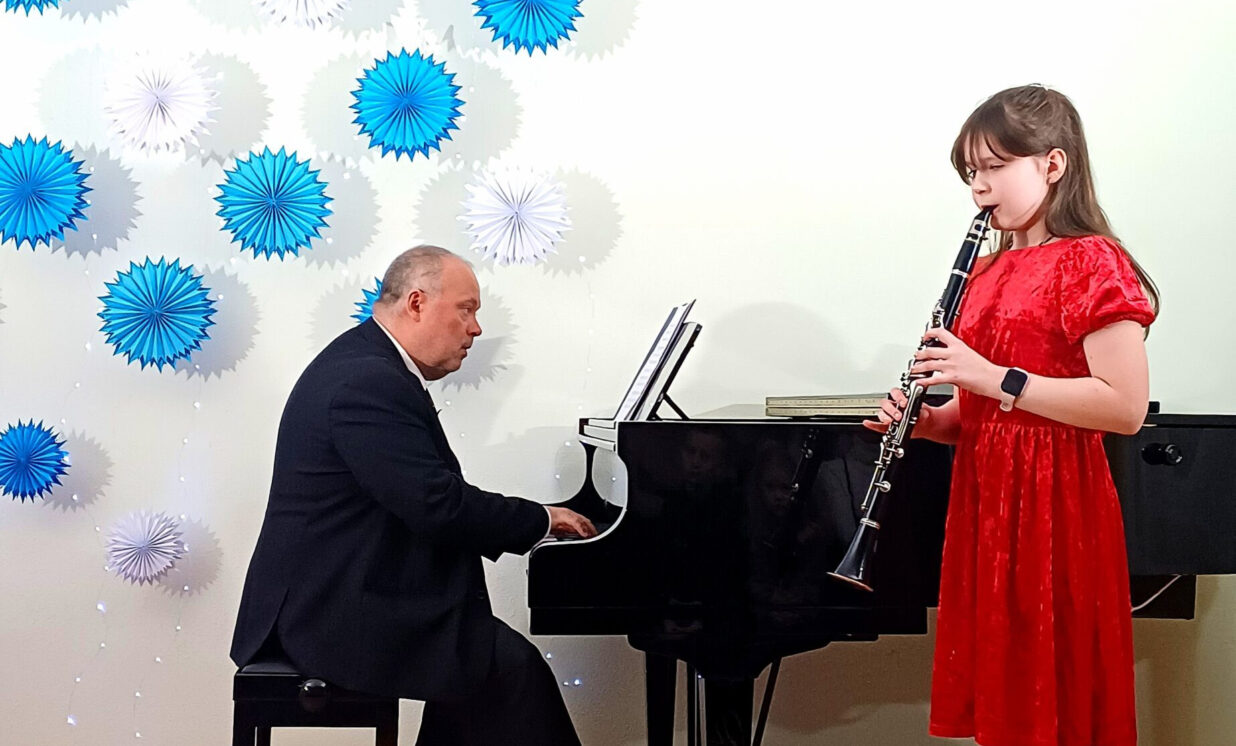 5.klases audzēknes – Agata Golovane (klarnete) un Darja Saidova (klavieres);