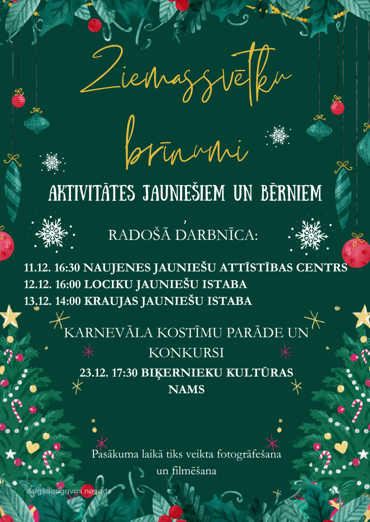 Ziemassvētku aktivitātes jauniešiem un bērniem Naujenes pagastā