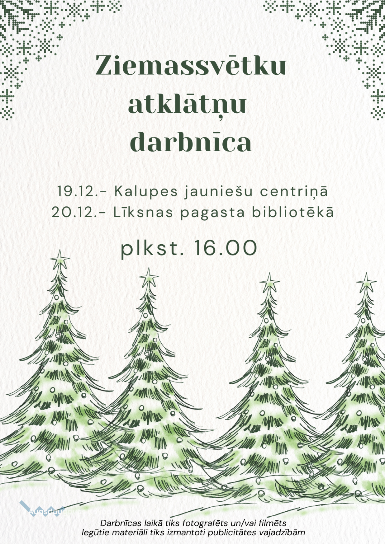 19. decembrī Kalupes jauniešu centriņā plkst. 16.00;