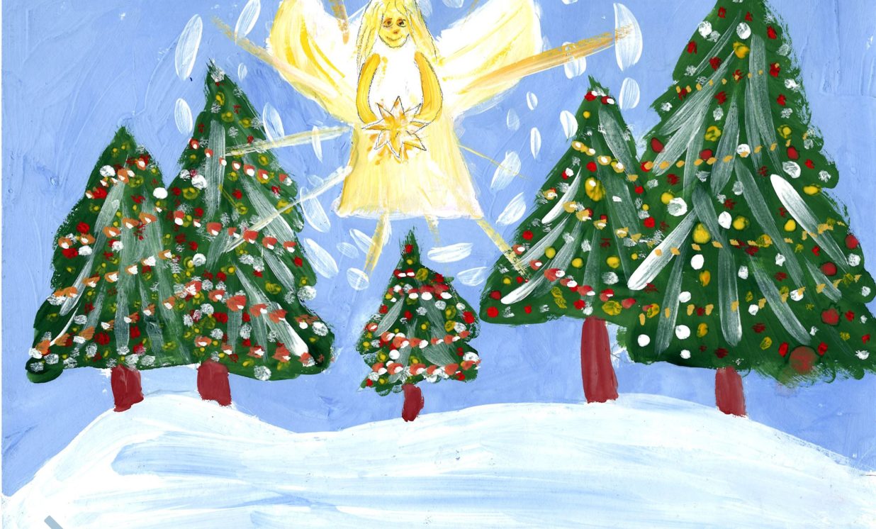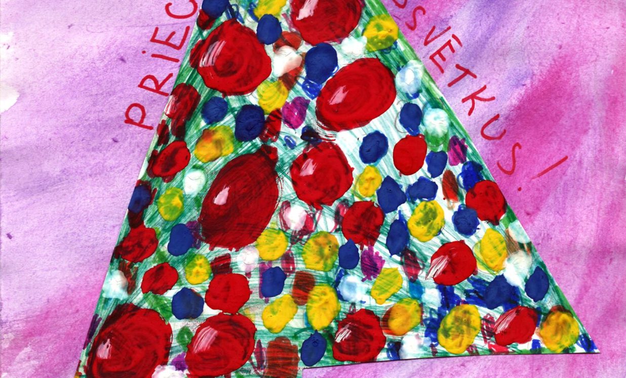 Ziemassvētku atklātņu konkursā bērni lielākoties atainoja svētku eglīti