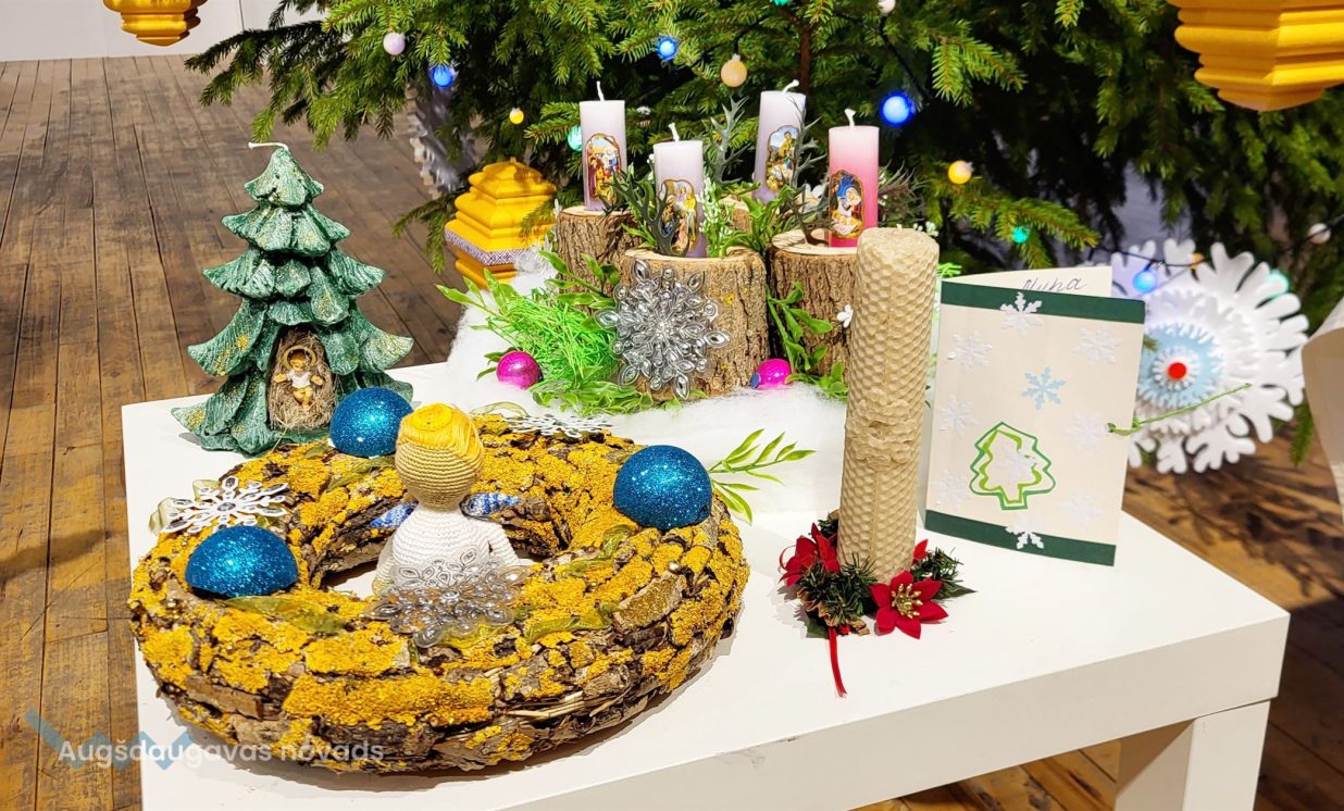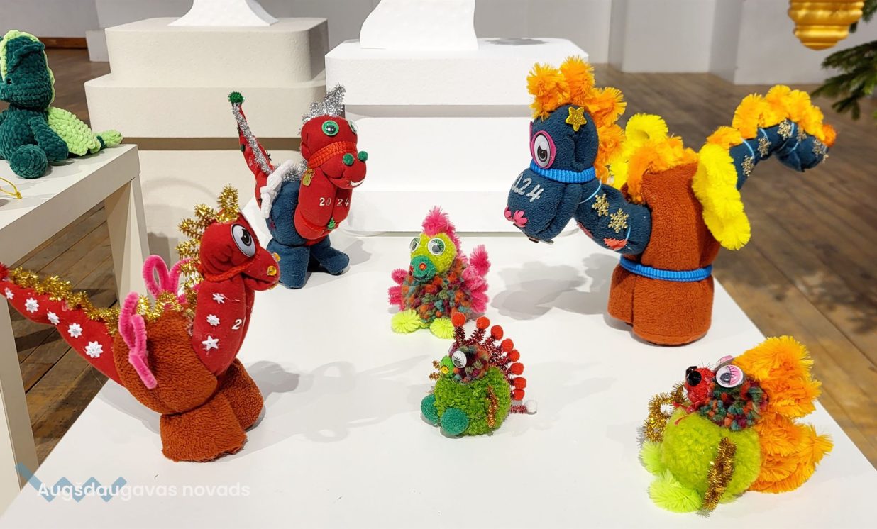 Decembrī Sventes Tautas namā bija apskatāma interešu grupas “Sventes pērlītes” izstāde svētku noskaņās. Rokdarbnieces izmantoja dažādus materiālus, lai radītu Adventes vainagus, galda dekorus, eglīšu rotājumus un, protams, nākamā gada simbolu – pūķi. Apbrīnojama ir rokdarbnieču izdoma un pirkstu veiklība!