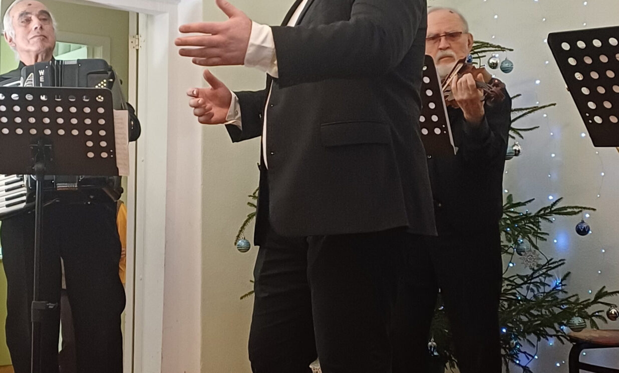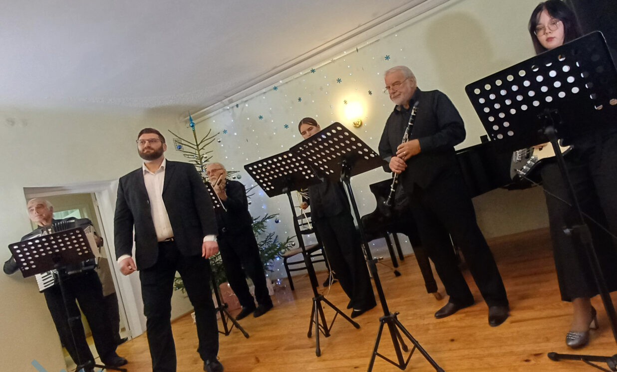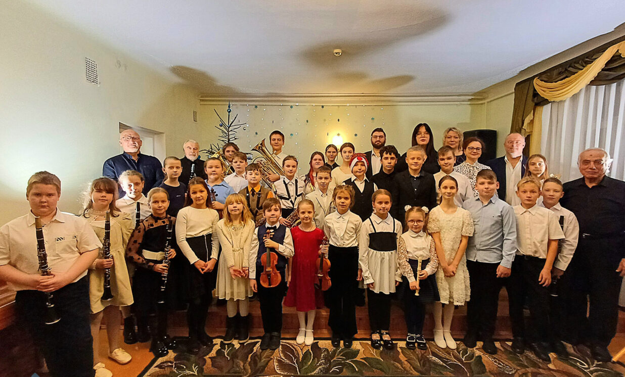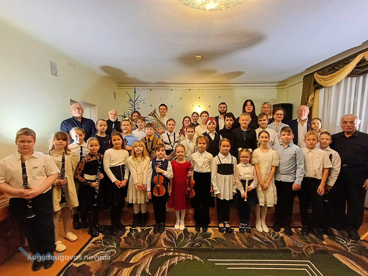 Koncerta noslēgumā ar “Ziemassvētku dziesmiņu” uzstājās audzēkņu un pedagogu instrumentālais ansamblis ar solistu Staņislavu Jakovenko.