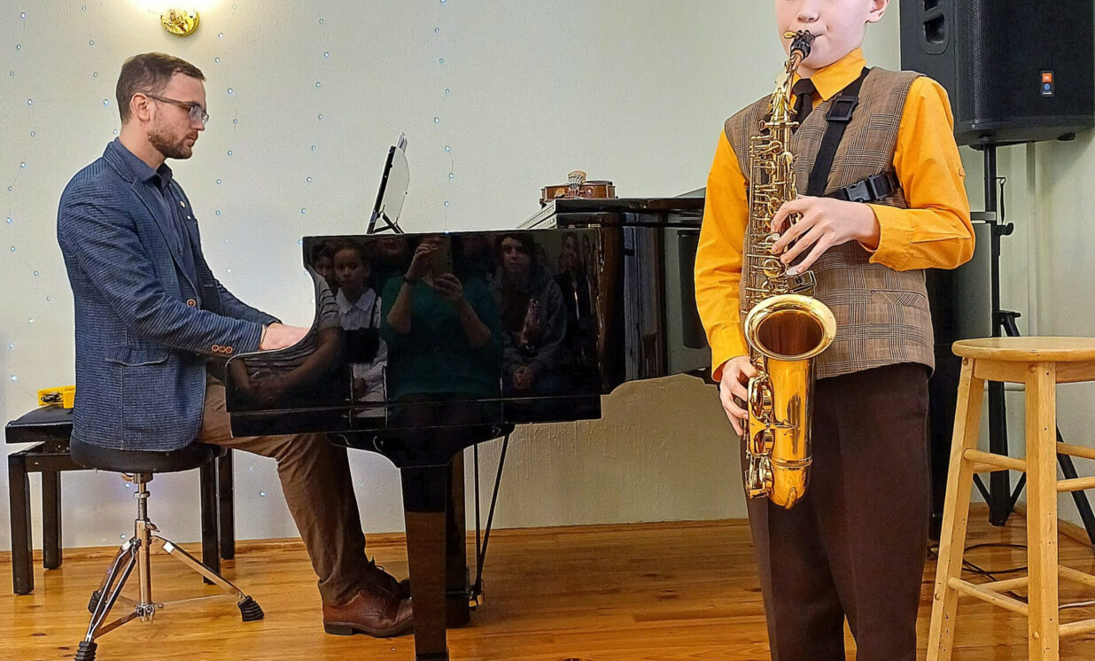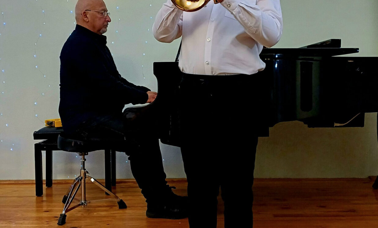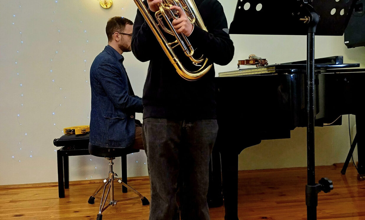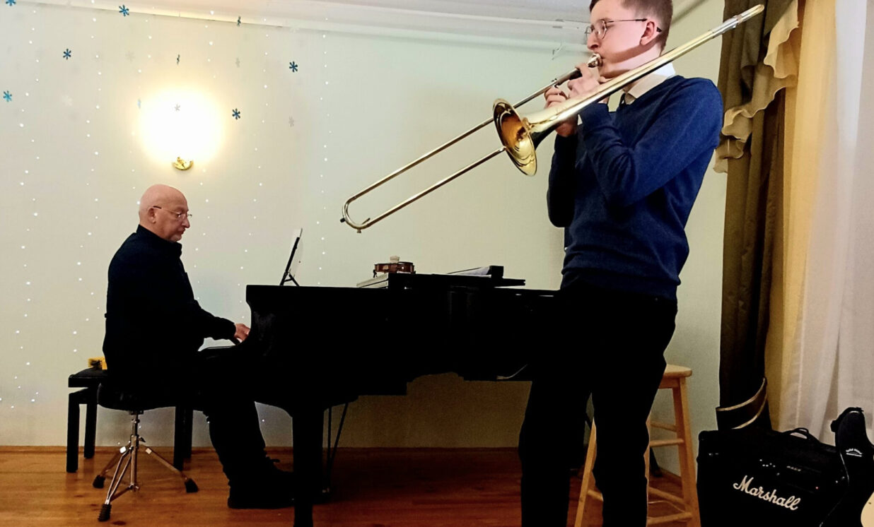 5. klases audzēkņi – Aivis Liģeris (trombons), Zahars Parfjonovs (akordeons);