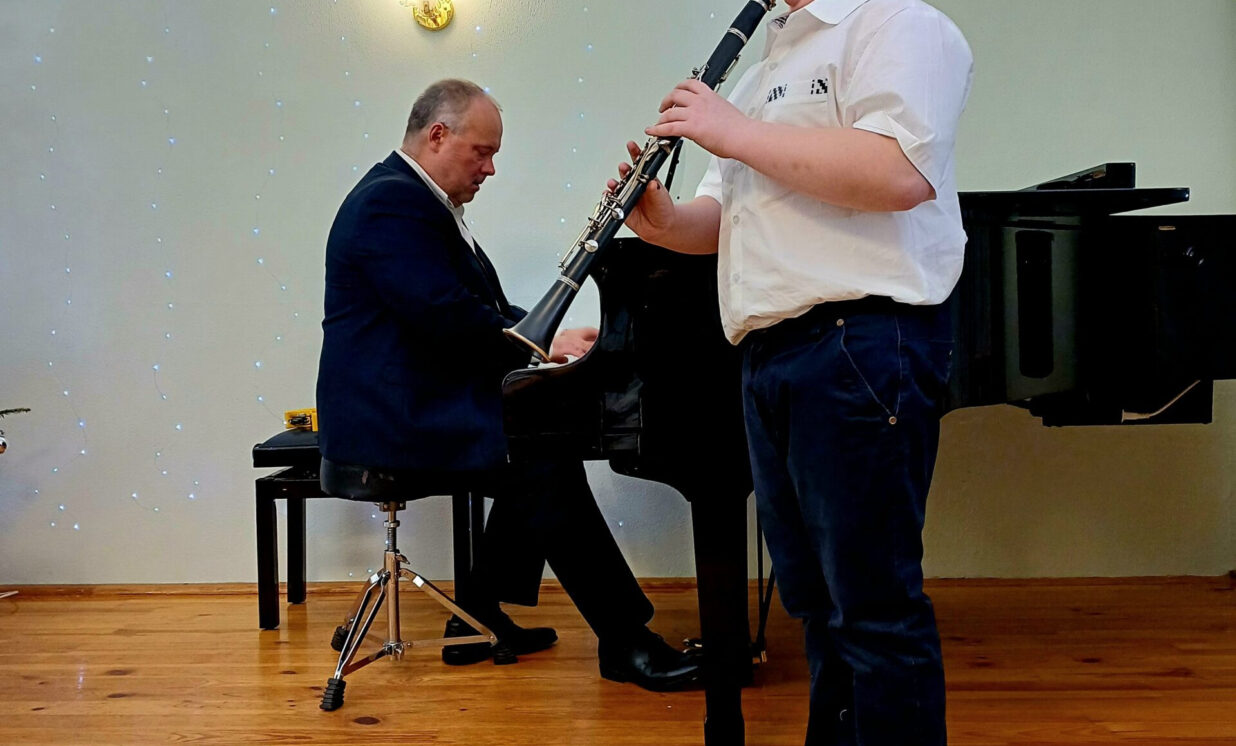 2. klases audzēkņi – Jana Černova (klarnete), Andrejs Stoļarovs (akordeons), Alina Peļušonoka (klavieres), Damirs Mirencovs (trompete), Nika Grigorjeva (klarnete);