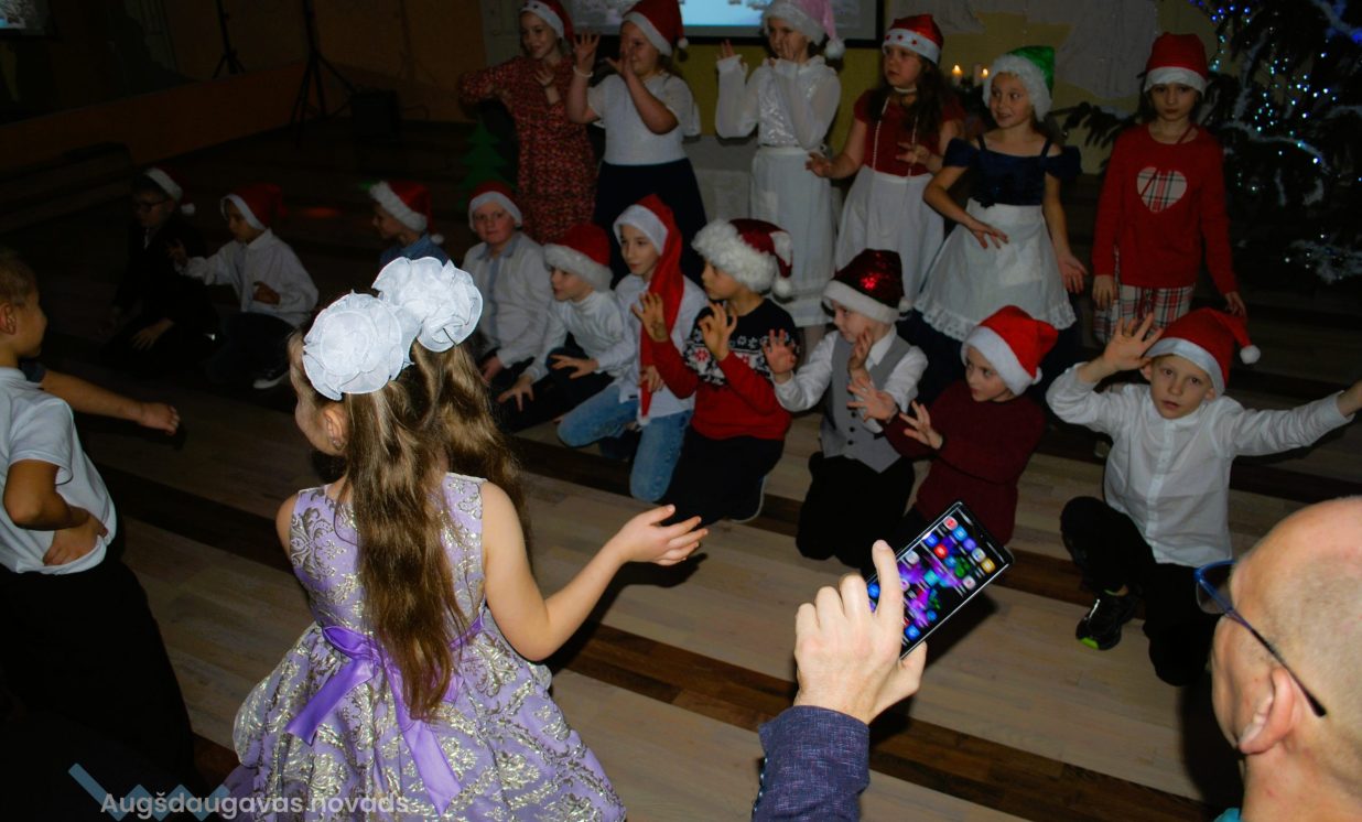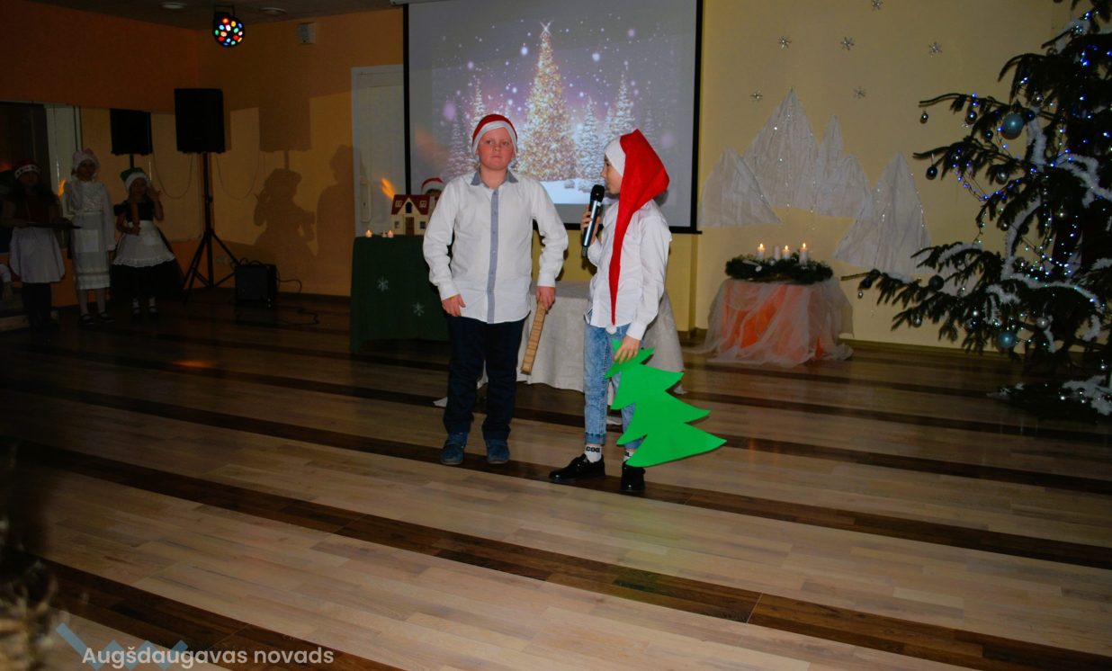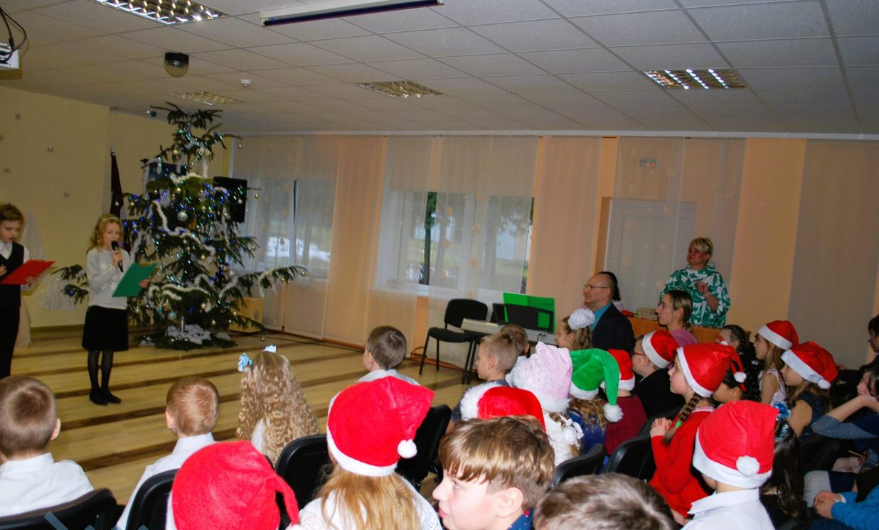 Pasākumā skatītājus iepriecināja sākumskolas vokālā ansambļa ”Ķipariņi”, instrumentālā ansambļa un skolas kora skanīgās dziesmas. Par Ziemassvētku noskaņu, mīlestību, svētku izjūtu vēstīja mūsu 1. un 3. klases daiļlasītāji. Savukārt Teātra pulciņa (2.kl. skolēni) aktieri atcerējās paši un atgādināja klātesošajiem Ziemassvētku tradīcijas.